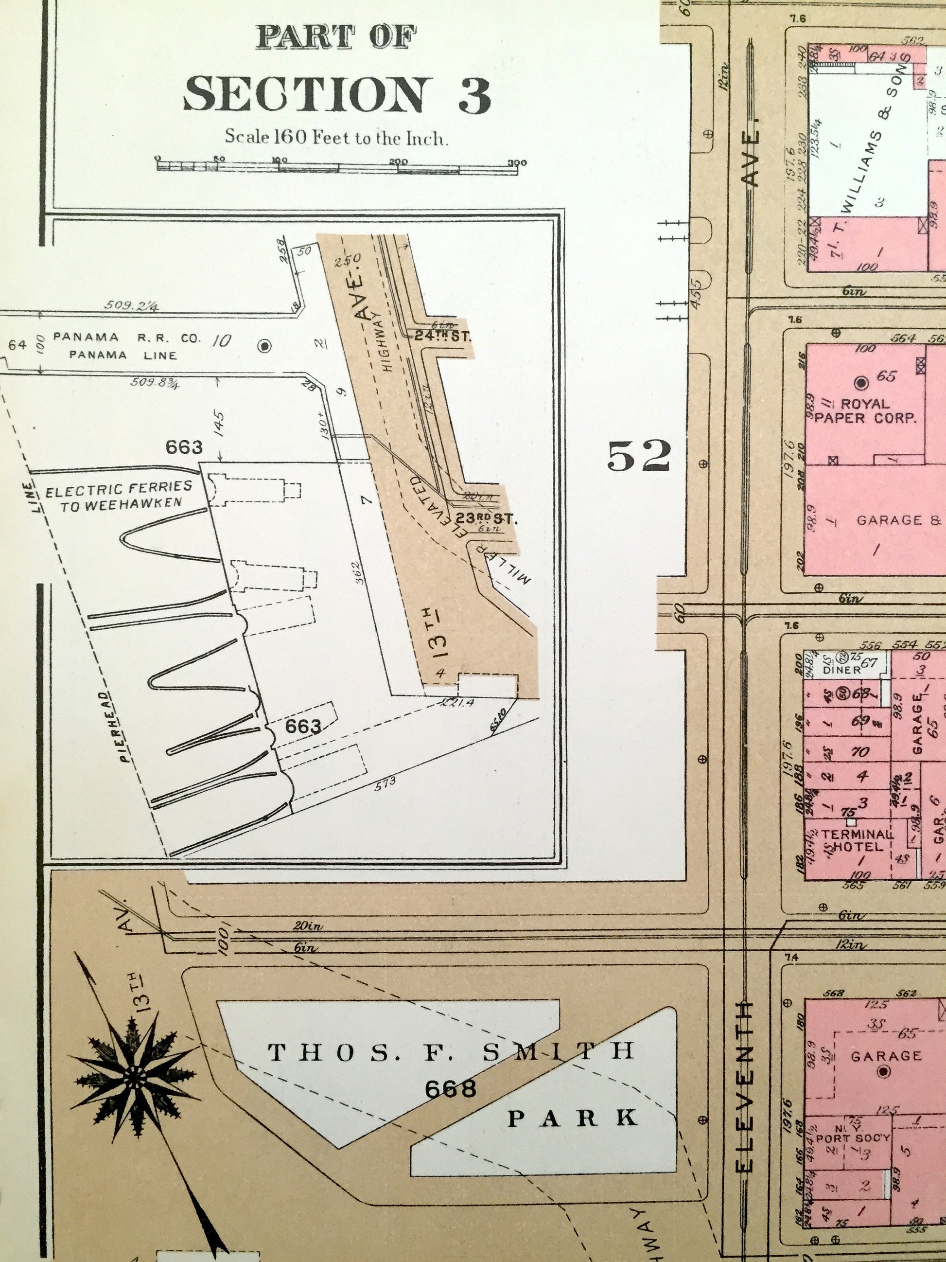 Antique Manhattan, New York Map from Bromley's 1955 Manhattan Land Book – Chelsea Piers, West Side, Hudson River, High Line, Midtown, NY NYC