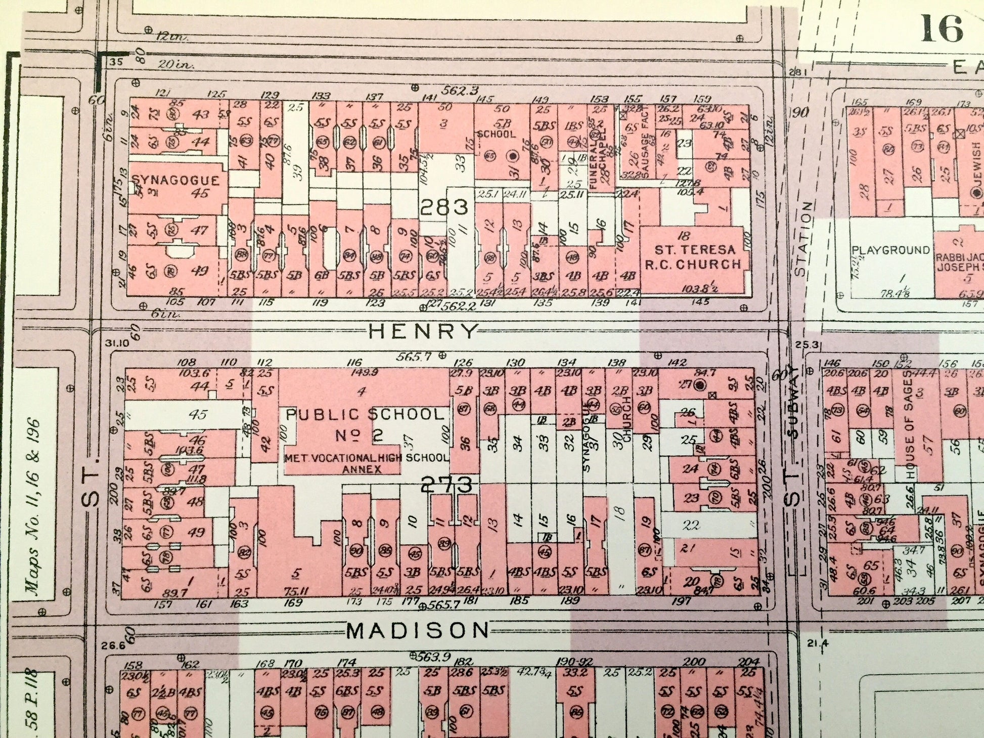 Points of Interest: La Guardia Houses, Manhattan Bridge, East River, PS No 2, St. Theresa Church, East Broadway and many more streets, subways, avenues, squares, parks, buildings, piers and landmarks.
