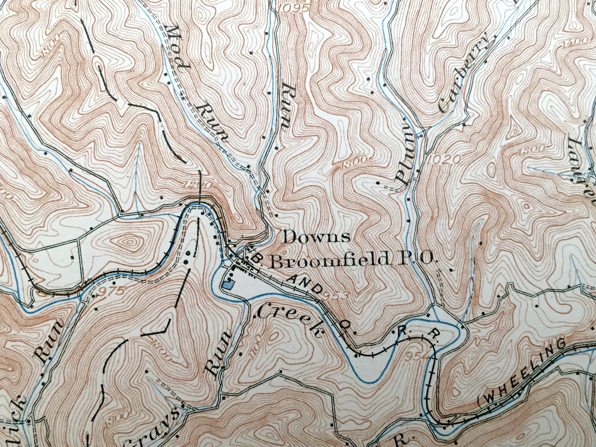 See what West Virginia looked like over 115 years ago. Lots of intricate details and geological contours. Map even has little squares for every house that existed at the time. The cartographers were very thorough back then! On the back is a description of topographic symbols and map guide.