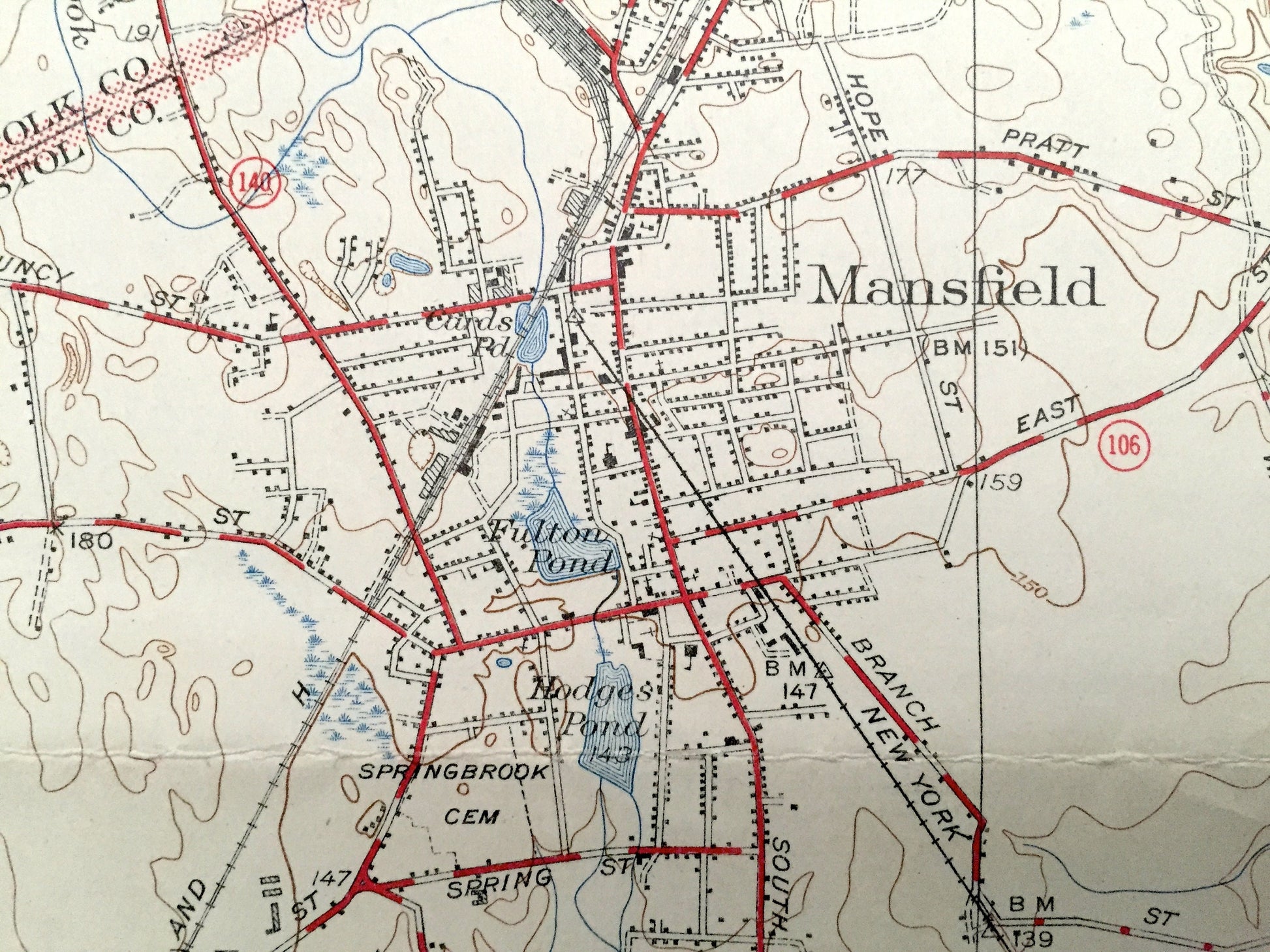 See what Norfolk and Bristol Counties looked like over 75 years ago. Lots of intricate details and geological contours. Map even has little squares for every house that existed at the time. The USGS cartographers were very thorough back then! On the back is a description of topographic symbols and map guide.