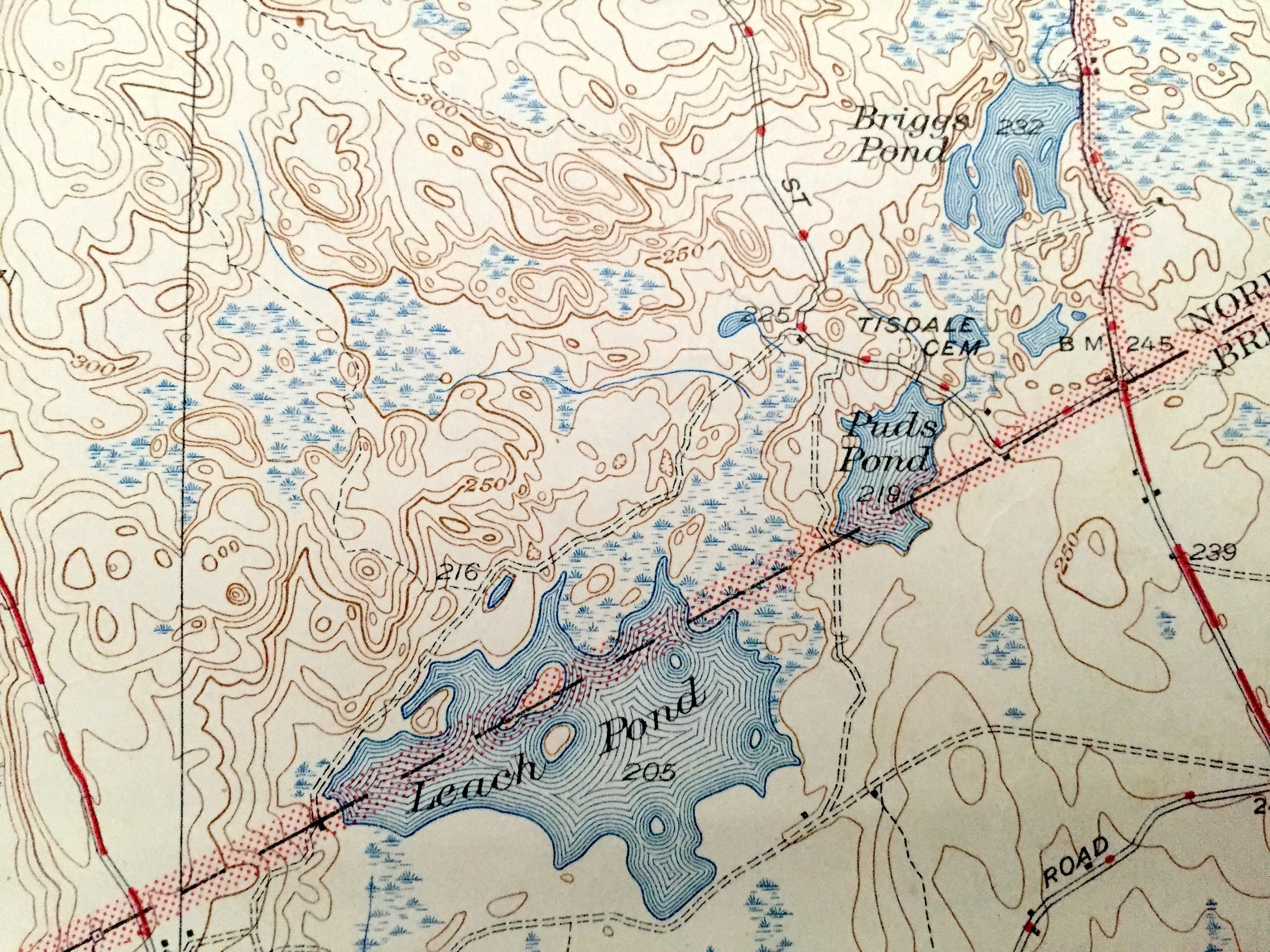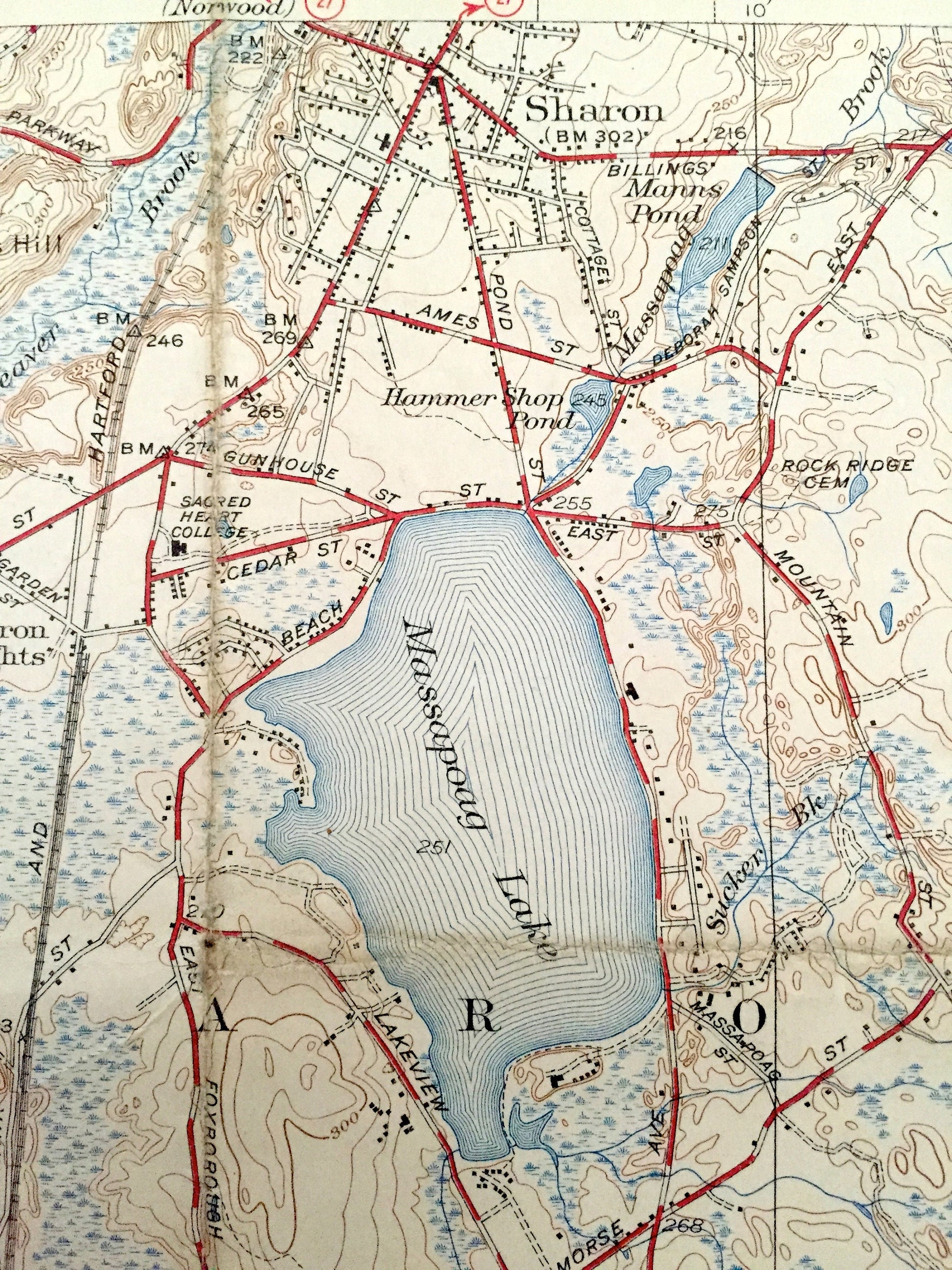 Points of Interest: Massapoag Lake, Leach Pond, Neponset Reservoir, Neponset Ridge, Cranberry Bog, Pratt School, New York New Haven and Hartford Railroad, Hartwell School, Easton Post Office, Union School, Poquanticut School, and lots more hills, mountains, streams, ponds, houses, schools and roads.