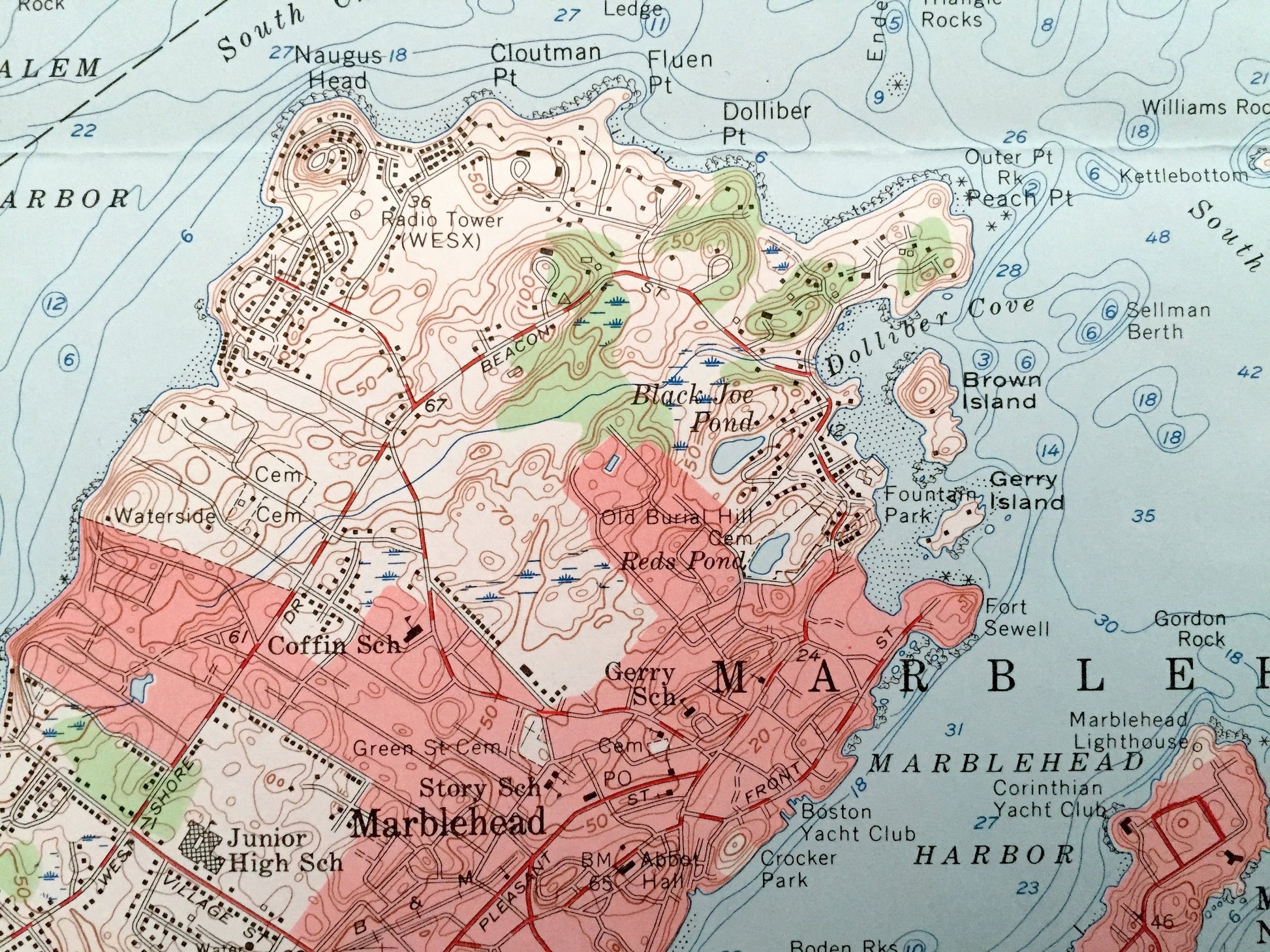 Antique Marblehead, Massachusetts 1956 US Geological Survey Topographic Map – Essex County, Manchester, Beverly, Salem, Wenham, Hamilton