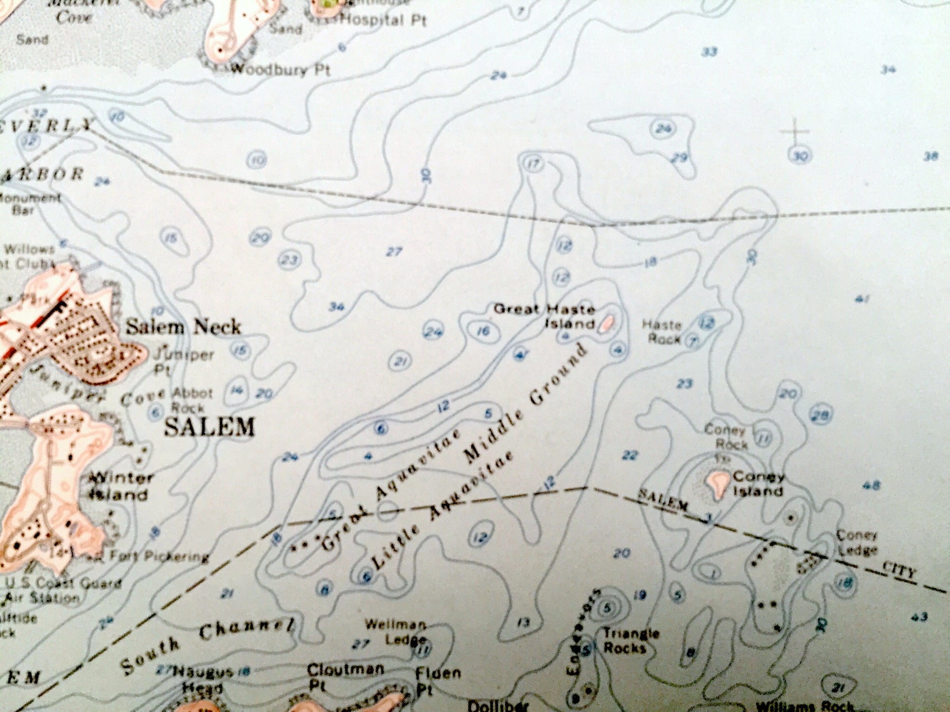 Points of Interest: Atlantic Ocean, Massachusetts Bay, Marblehead Harbor, Winter Island, Salem Harbor, Beverly Harbor, Dolliber Cove, Ram Islands, House Island, Beverly Cove, Mackerel Cove, Beverly Rocks, Boston and Maine Railroad, Patch Beach, West Beach, Singing Beach, Christian Hill, Moses Hill, Sheep Pasture Hill, Shingle Place Hill, Beaverdam Hill, Longham Reservoir, Beaver Pond, Chebacco Lake, and many more beaches, points, islands, roads, houses, reservoirs, ponds, and hills.