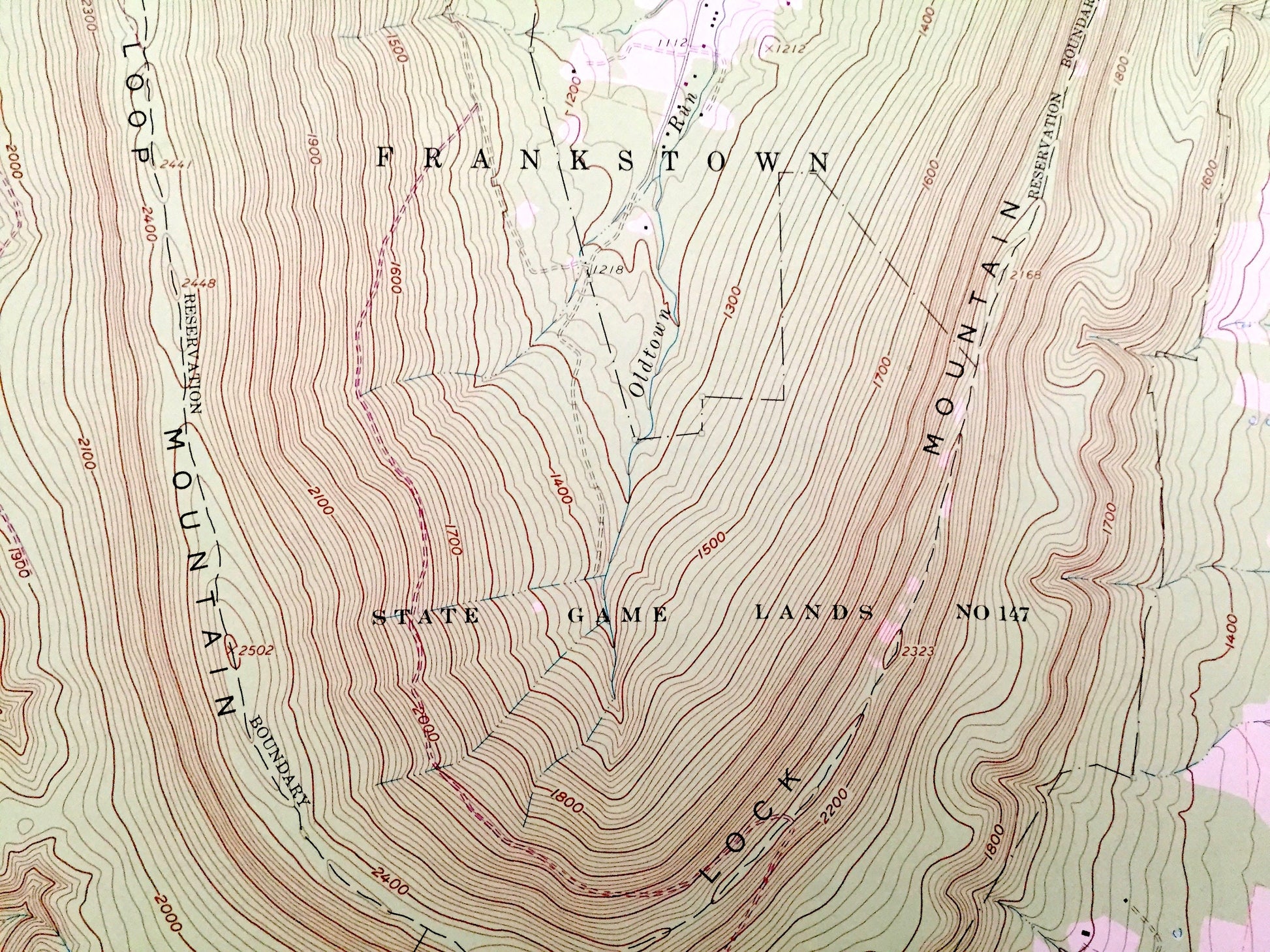 Points of Interest: Tussey Mountain, Loop Mountain, Lock Mountain, State Game Lands, Piney Creek, Penn Central Railroad, Lookout Tower, Clover Creek, Blair County Airport, Radio Tower, and many more hills, streams, ponds, houses, schools, churches and roads.