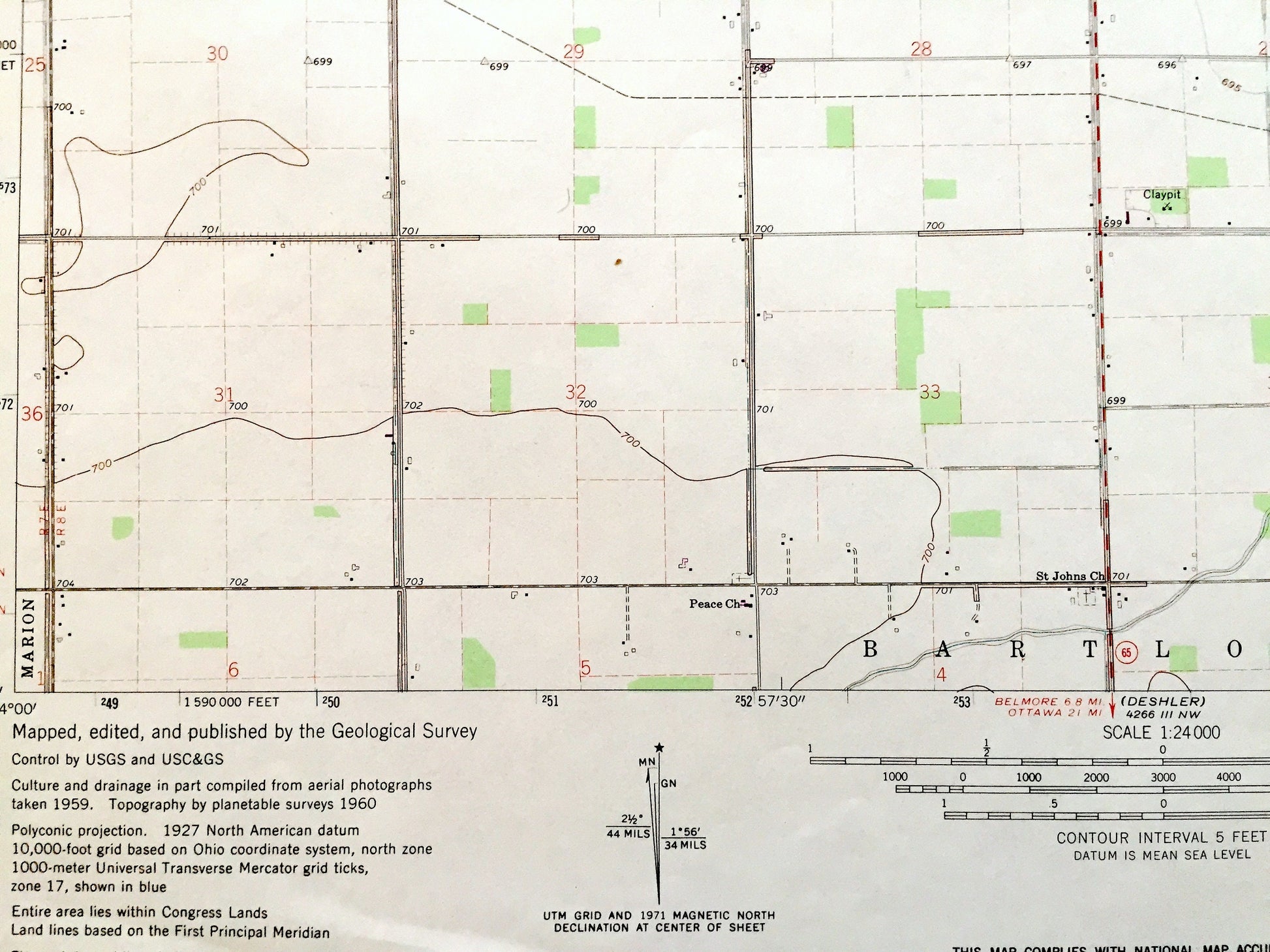 Beautiful, antique map of McClure, Ohio and surrounding Henry County and Wood County areas. This is an authentic 1960 edition, 1972 print from the U.S. Geological Survey and NOT a computer reproduction.