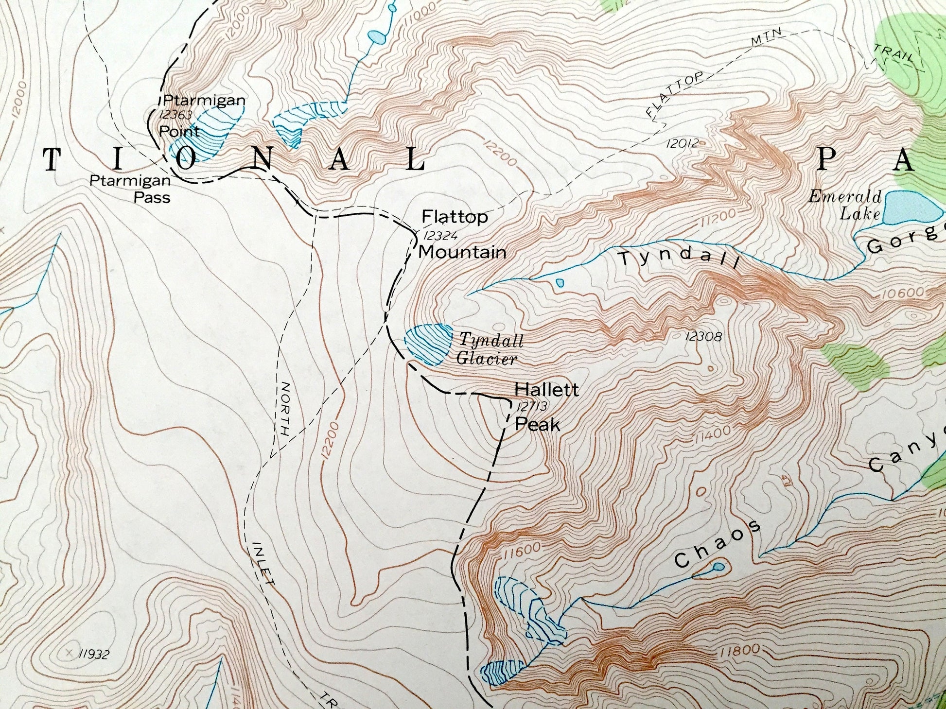 Points of Interest: Alva B Adams Tunnel, Rocky Mountain National Park, Chaos Canyon, Beaver Mountain, Forest Canyon, Spruce Canyon, Hayden Gorge, Ptarmigan Mountain, Snowdrift Peak, Knobtop Mountain, Notchtop Mountain, Glacier Knobs, McHenrys Peak, McHenrys Notch, Bierstadt Moraine, Mill Creek Basin, Glacier Gorge Junction, Lonesome Lake, Snowdrift Lake, Pettingell Lake, Lake Nokoni, Lake Nanita, Hallett Creek, Hayden Creek, Thompson River, Shelf Creek, and many more hills, streams, ponds, houses, schools, railroads, churches and roads.