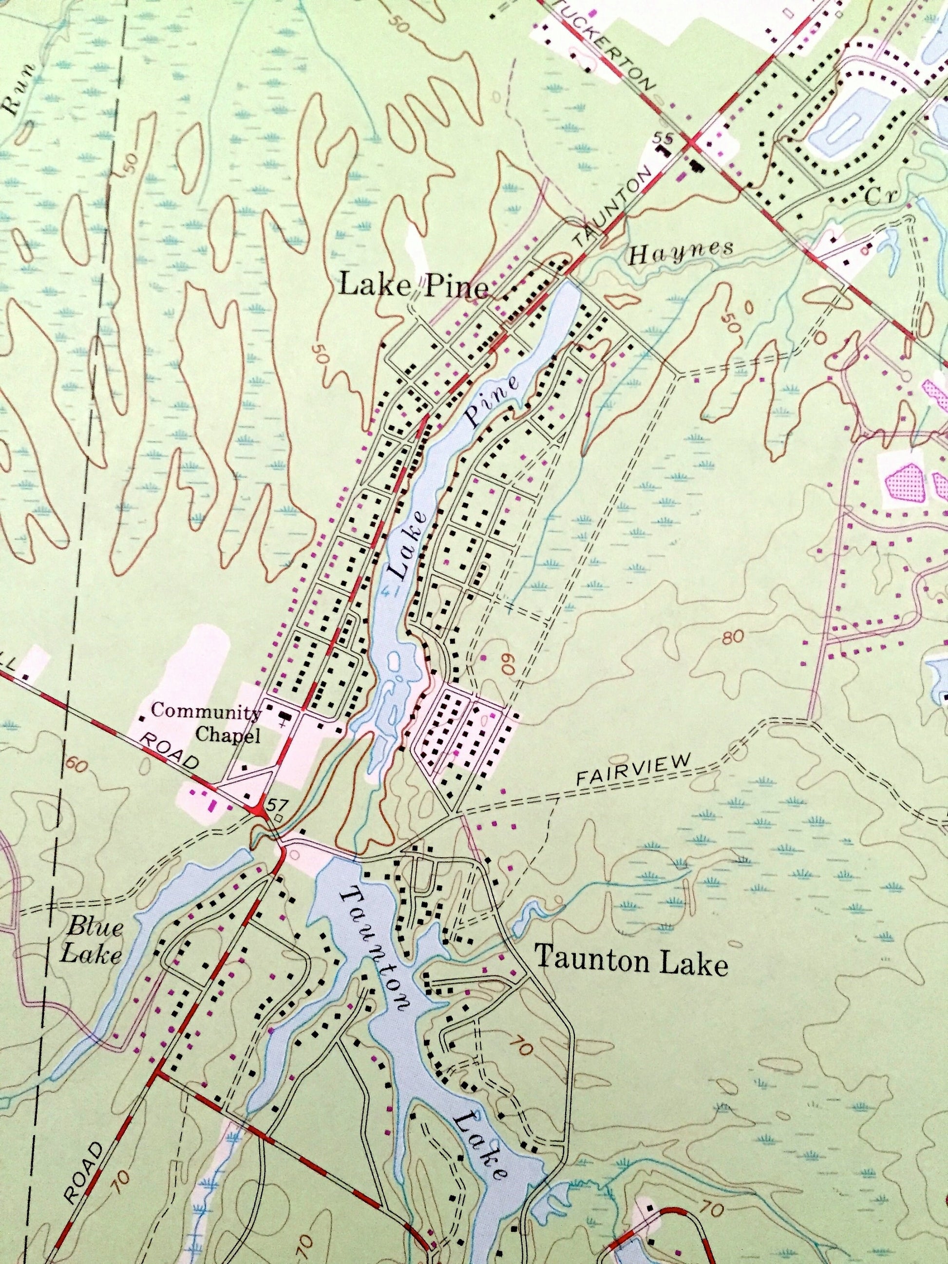 Points of Interest: Wharton State Forest, Stone Mountain, Atco Dragway, Camp Kettle Run, West Jersey Cranberry Meadow, Lake Mishe-Mokwa, Lower Aetna Lake, Upper Aetna Lake, Lake Stockwell, Papoose Lake, Squaw Lake, Lost Lake, Lake Norrsken, Lake Pine, Blue Lake, Centennial Lake, Barton Run, Haynes Creek, Braddock Millpond, Mullica River, Hays Mill Creek, Wesickaman Creek, Indian Mills Brook, and many more hills, streams, ponds, houses, schools, railroads, churches and roads.