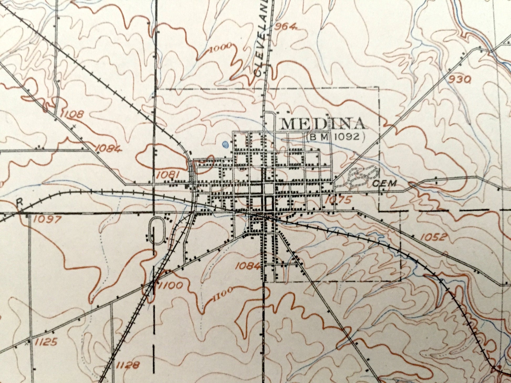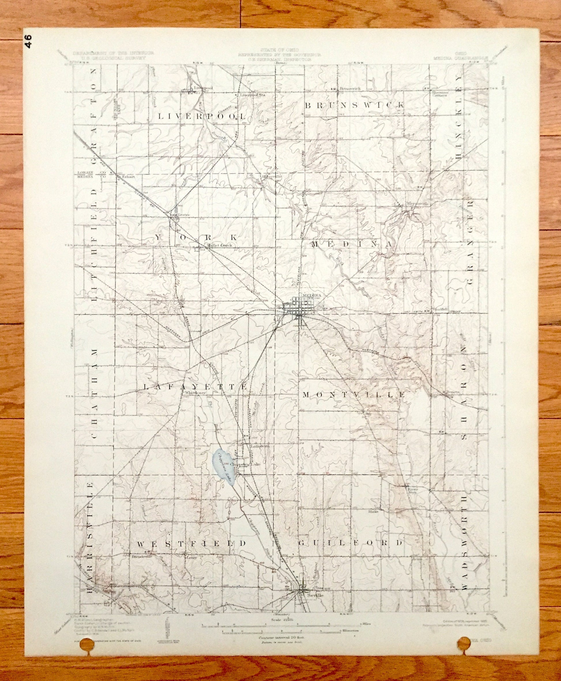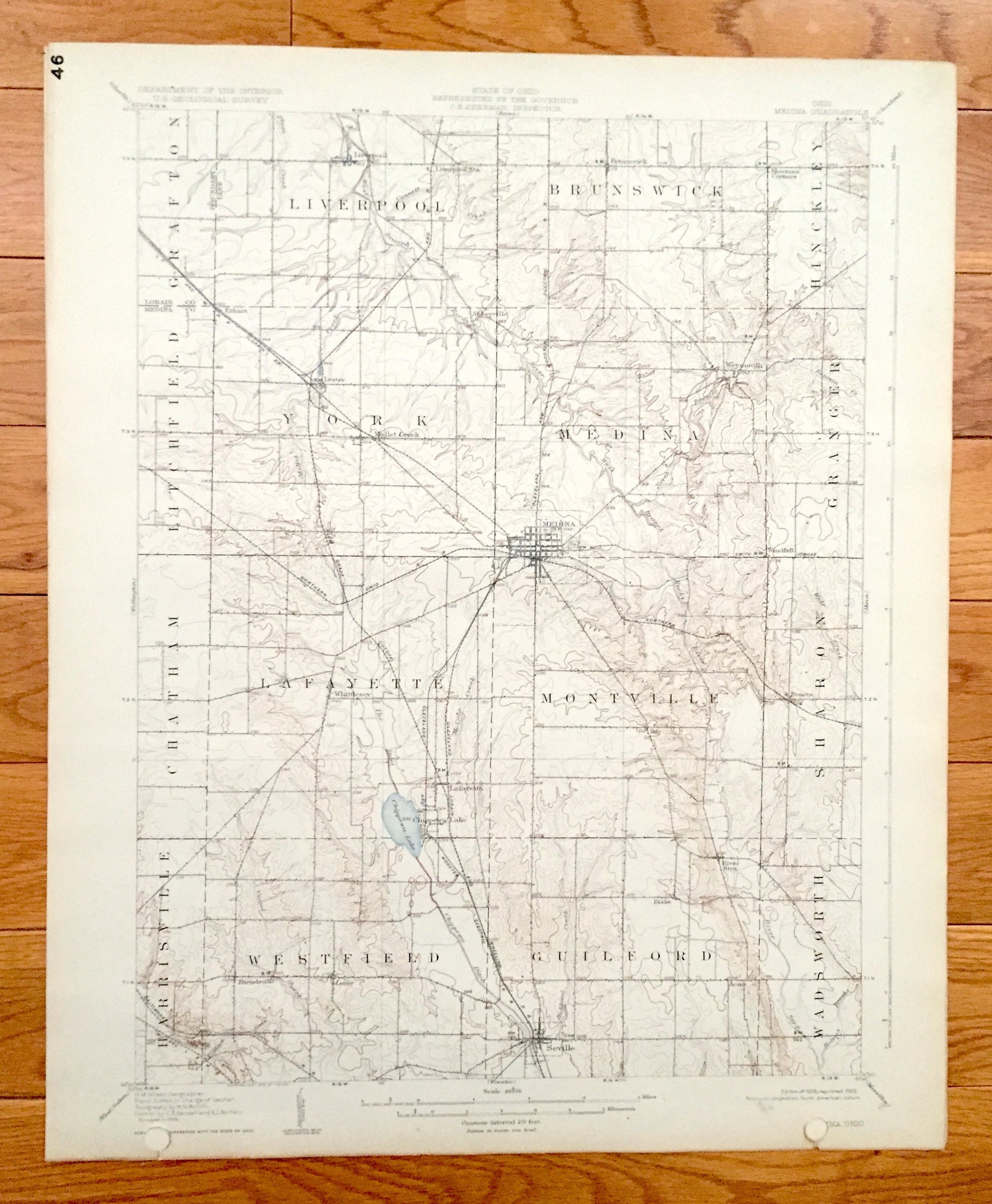 Beautiful, antique map of Medina, Ohio and surrounding Lorain & Medina County areas. This is an authentic 1906 edition, 1925 print from the U.S. Geological Survey and NOT a computer reproduction.