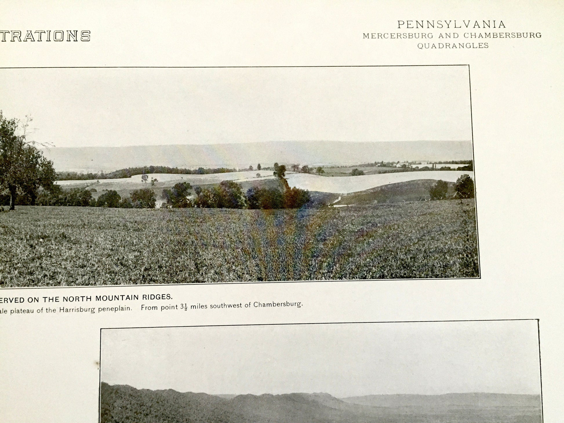 Beautiful, antique plate of photographs of the Mercersburg-Chambersburg region of Pennsylvania. This is an authentic 1909 print from a U.S. Geological Survey folio and NOT a computer reproduction.
