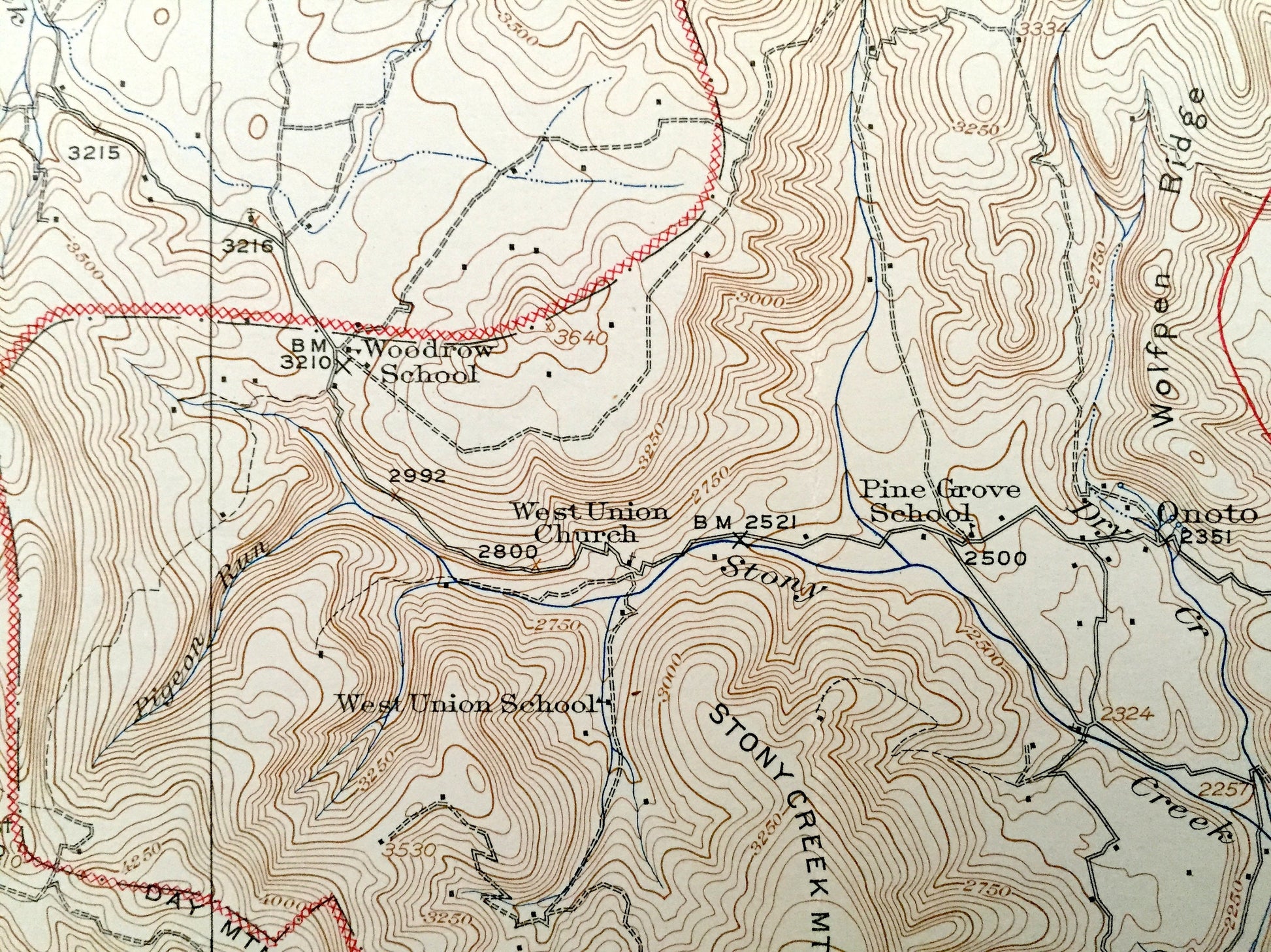 See what West Virginia looked like over 90 years ago. Lots of intricate details and geological contours. Map even has little squares for every house that existed at the time. The USGS cartographers were very thorough back then! On the back is a description of topographic symbols and map guide.