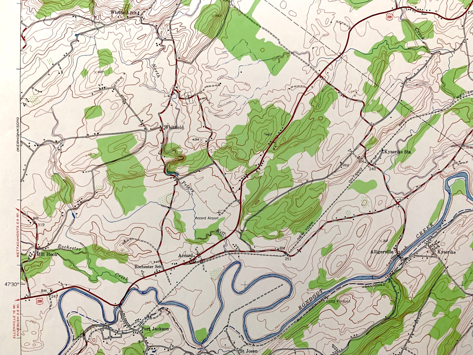 Points of Interest: Ulster County, Shawangunk Mountains, Catskill Park, Rondout Creek, Rochester Creek, Duck Pond, Lyonsville Pond and many more roads, railroads, houses, ponds, hills, creeks, and lakes.