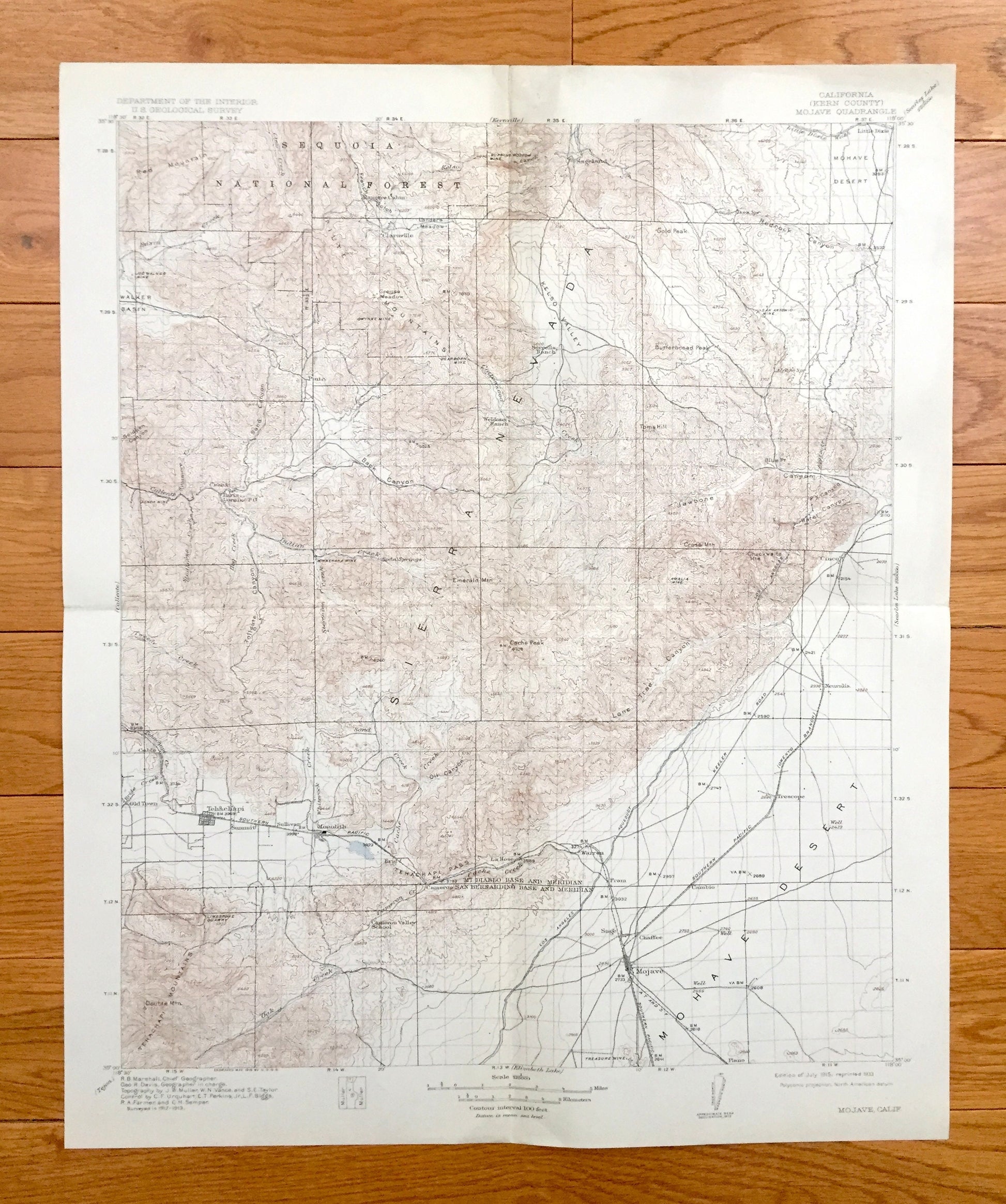 Antique Mojave, California 1915 US Geological Survey Topographic Map – Mojave Desert, Mohave, Tehachapi, Kern County, Sierra Nevada, Sequoia