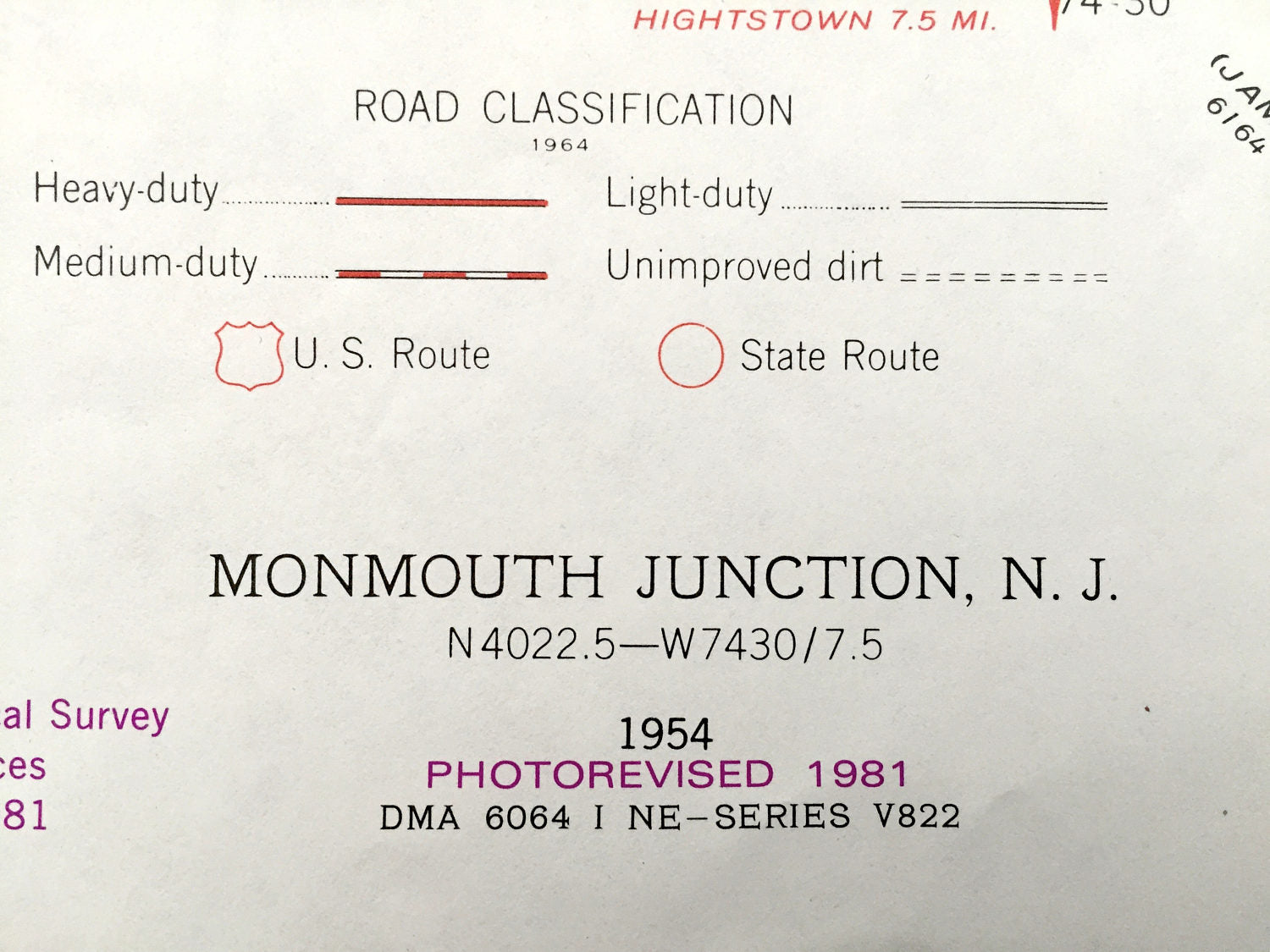 Beautiful, antique map of Monmouth Junction, South Brunswick, Kendal Park, Sunset Hill Garden, Hillsborough and Middlebush, New Jersey. This is an authentic 1981 print of 1954 survey data from the U.S. Geological Survey and NOT a computer reproduction.