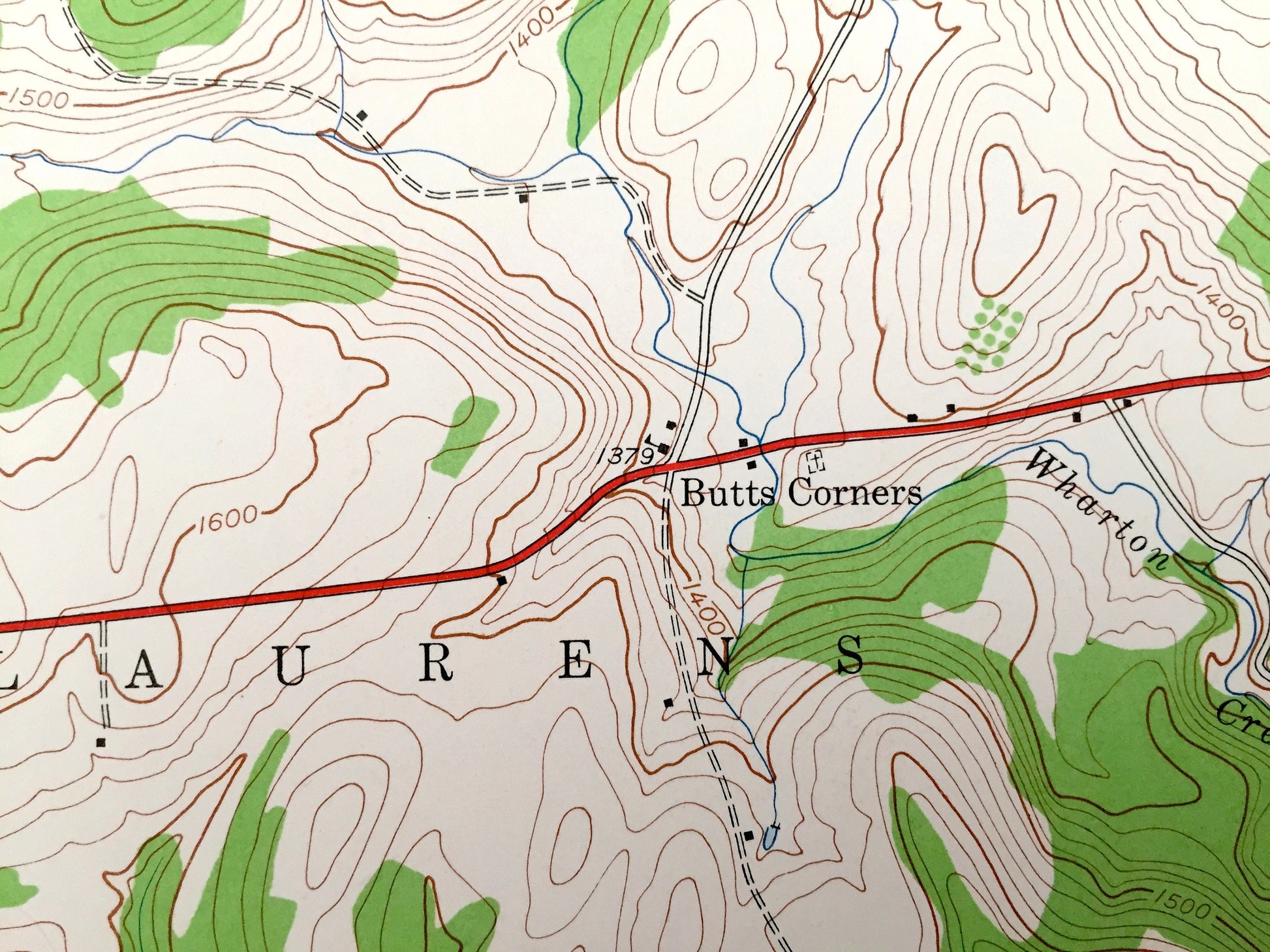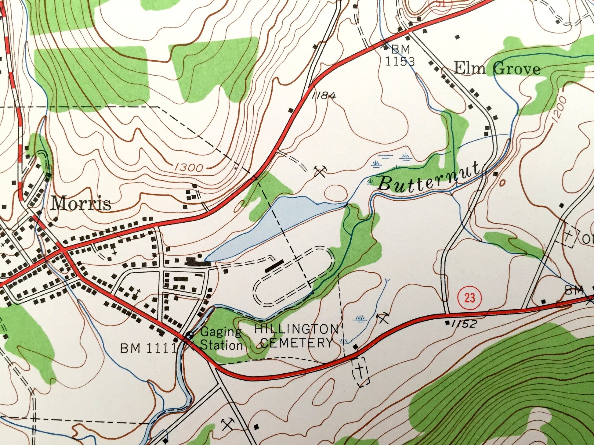 Beautiful, antique map of Morris, New York and surrounding Otsego County area. This is an authentic edition of 1943 print from the U.S. Geological Survey and NOT a computer reproduction.