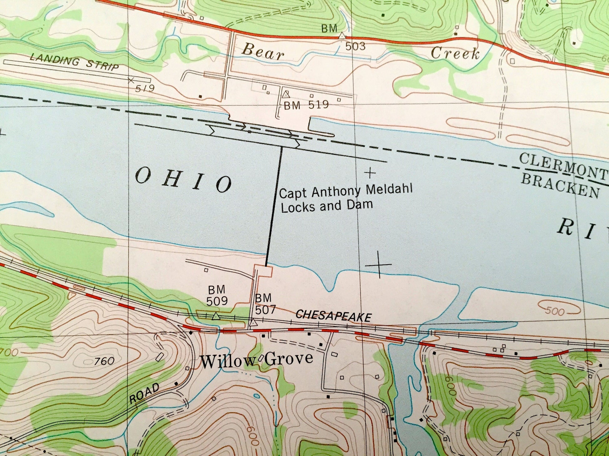 Points of Interest: Ohio River, Captain Anthony Meldahl Locks and Dam, Snug Creek, Regional Mines, William H Simmer Nuclear Power Station, Us Military Reservation, Regional Radio Towers and many more roads, streams and houses.