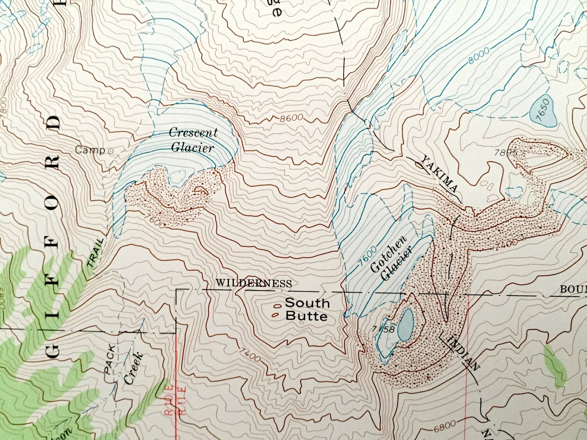 Points of Interest: Gifford Pinchot National Forest, Mount Adams, Yakima County, Red Butte, Suksdorf Ridge, South Butte, Hellroaring Creek, Hellroaring Meadow, Bird Creek Meadows, Avalanche Valley, The Island, Rusk Creek, and lots more hills, glaciers, mountains, brooks, canyons and rivers.