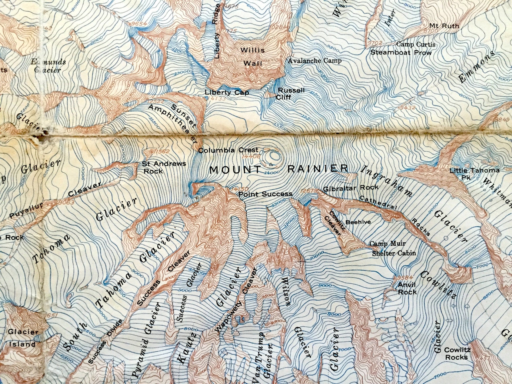 See what Washington looked like over 65 years ago. Lots of intricate details and geological contours. Map even has little squares for every house that existed at the time. The USGS cartographers were very thorough back then! On the back is a detailed description of Mt. Rainier National Park.