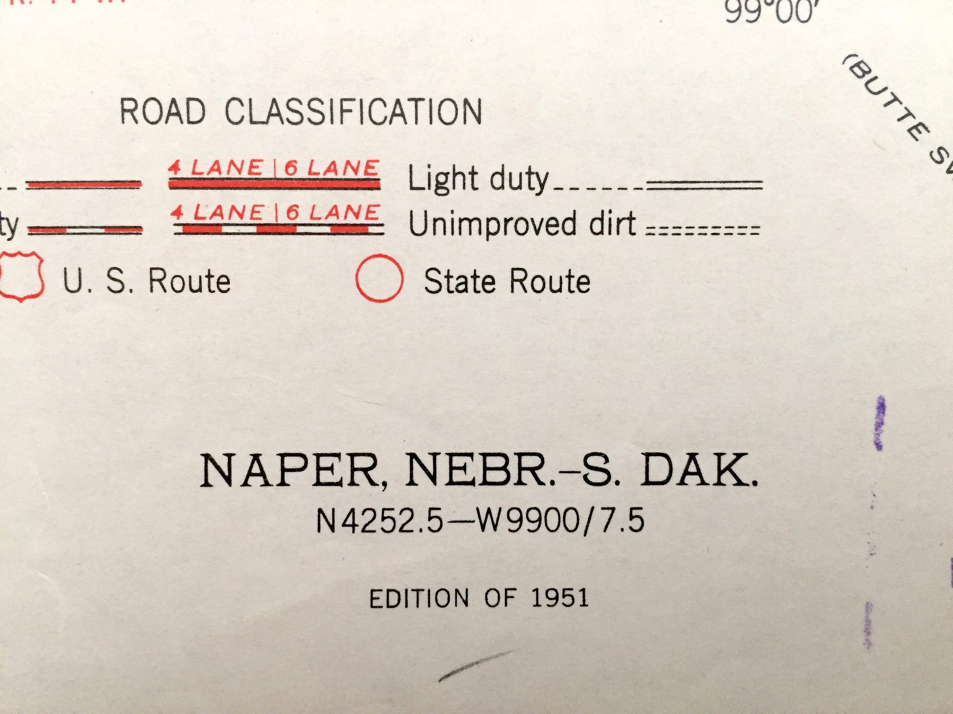Beautiful, antique map of Naper, Basin and Dustin Nebraska including Pleasant Valley, South Dakota. This is an authentic 1951 print from the U.S. Geological Survey and NOT a computer reproduction.