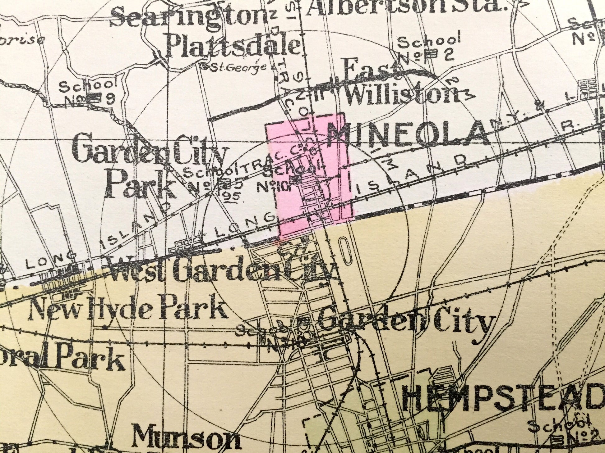 Beautiful, antique map of Nassau County, New York, including Oyster Bay, Hempstead, Mineola, Freeport, Farmingdale, Long Beach & East Rockaway. This is an authentic map taken from the rare New Century Atlas published in 1912 and NOT a computer reproduction.