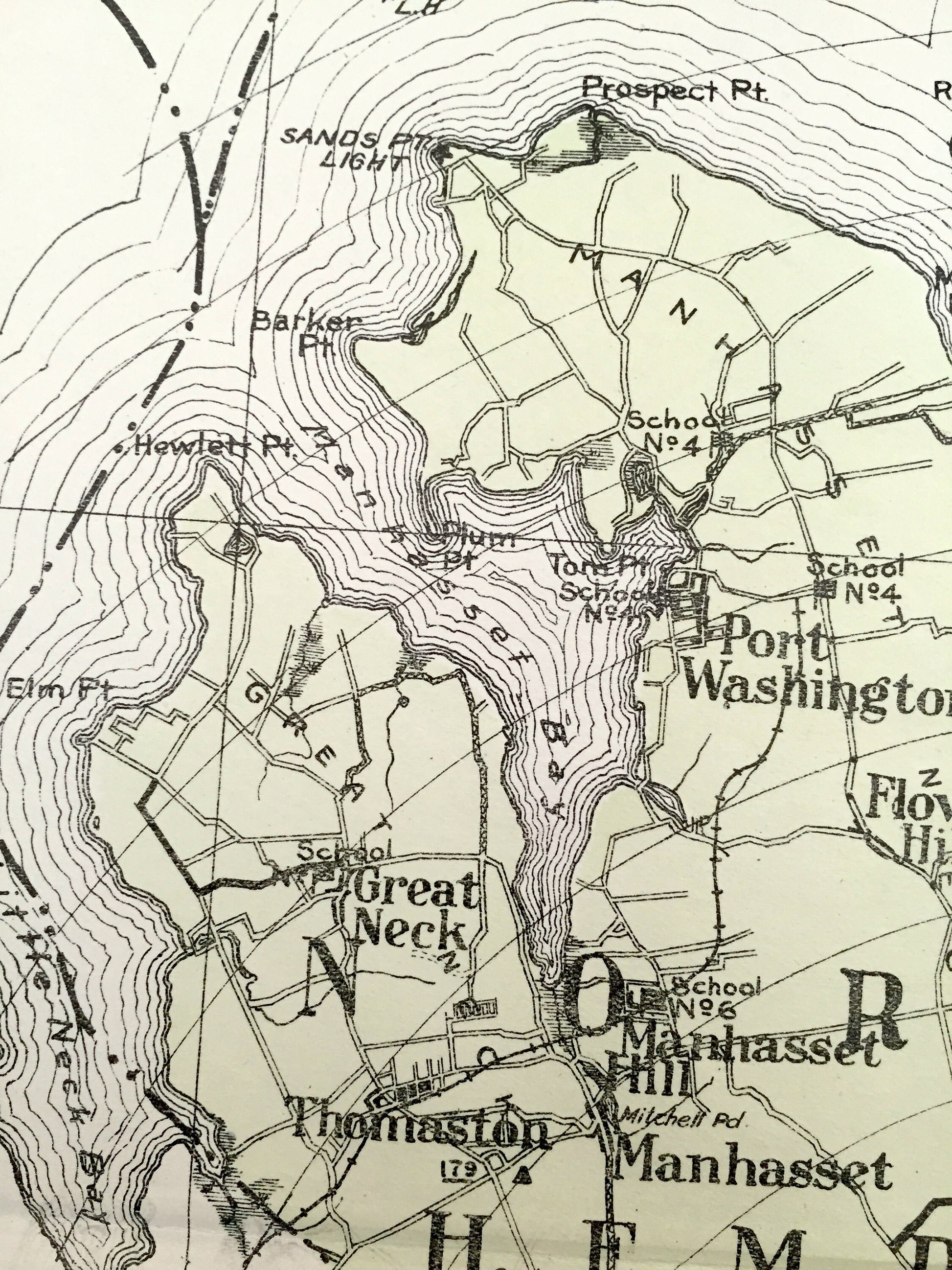 Points of Interest: Long Island, Long Island Sound, Atlantic Ocean, Little Neck Bay, Manhasset Bay, Hempstead Harbor, Oyster Bay Harbor, Cold Spring Harbor, Bay of Rockaway, Far Rockaway Beach, Hicks Beach, Broad Channel, Long Beach, Middle Bay, Jones Inlet, Short Beach, Jones Beach, South Oyster Bay, New York & Long Island Railroad and many more ponds, lakes, creeks, rivers, roads, highways, railroads, farms, school houses and elevations.