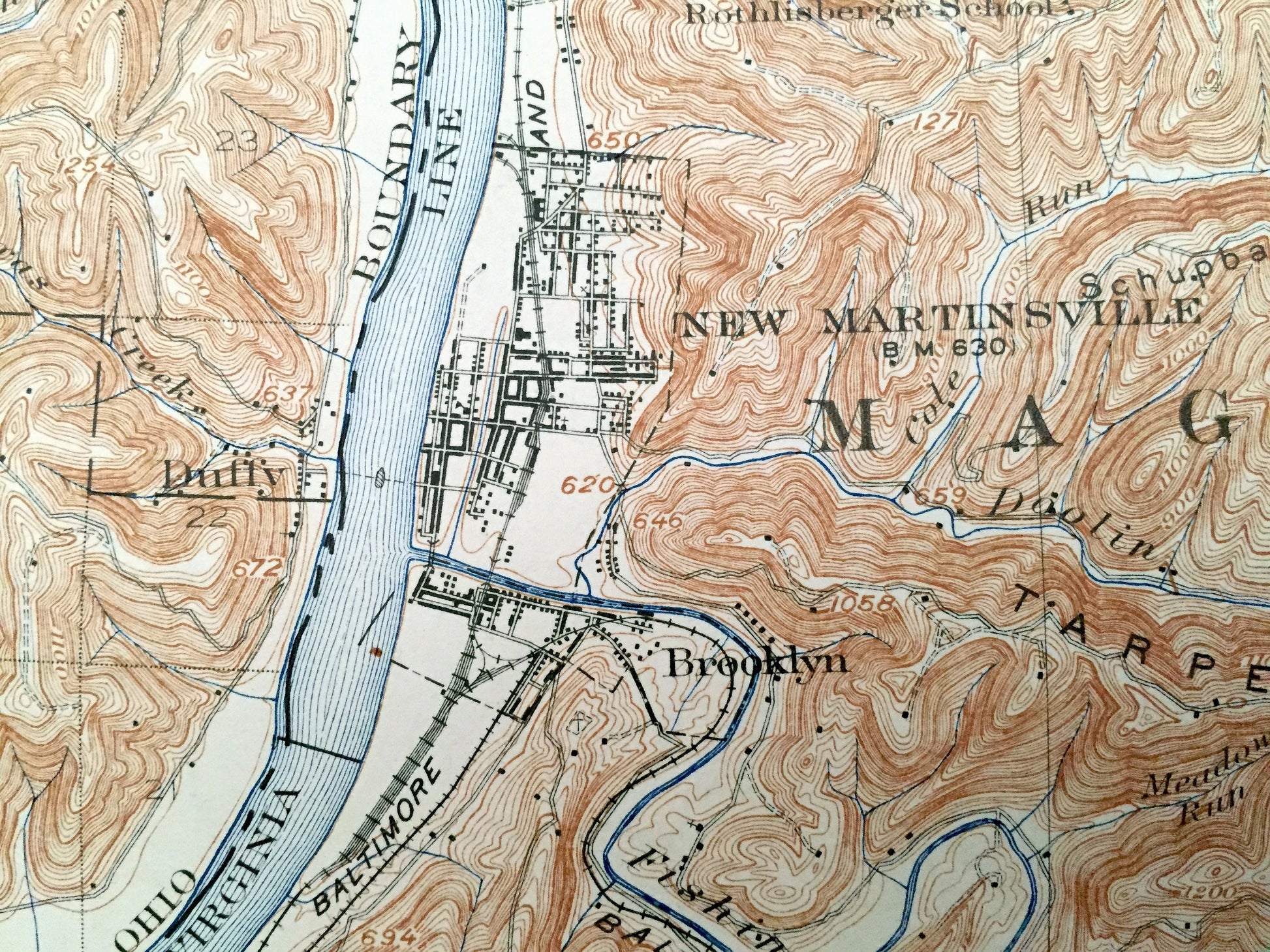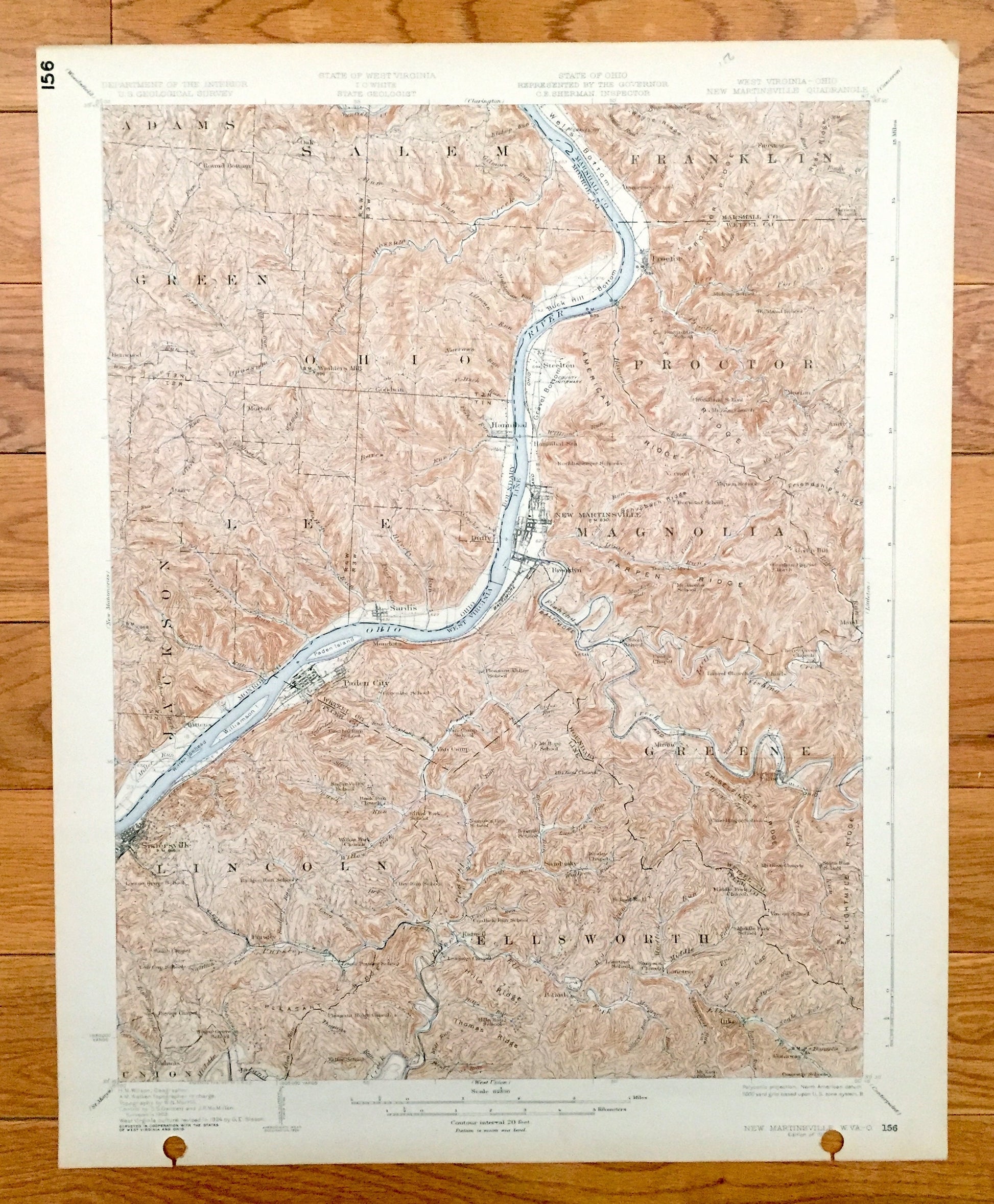 See what West Virginia and Ohio looked like 100 years ago. Lots of intricate details and geological contours. Map even has little squares for every house that existed at the time. The USGS cartographers were very thorough back then! On the back is a description of topographic symbols and map guide.