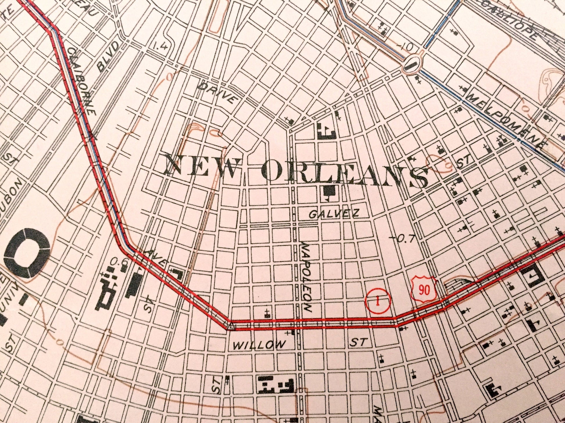 Points of Interest: Orleans Parish, Jefferson Parish, Lake Pontchartrain, St Bernard Parish, Mississippi River, Tulane University, Inner Harbor Canal, Bayou Segnete, and many more towns, train tracks, bayous, canals and rivers.