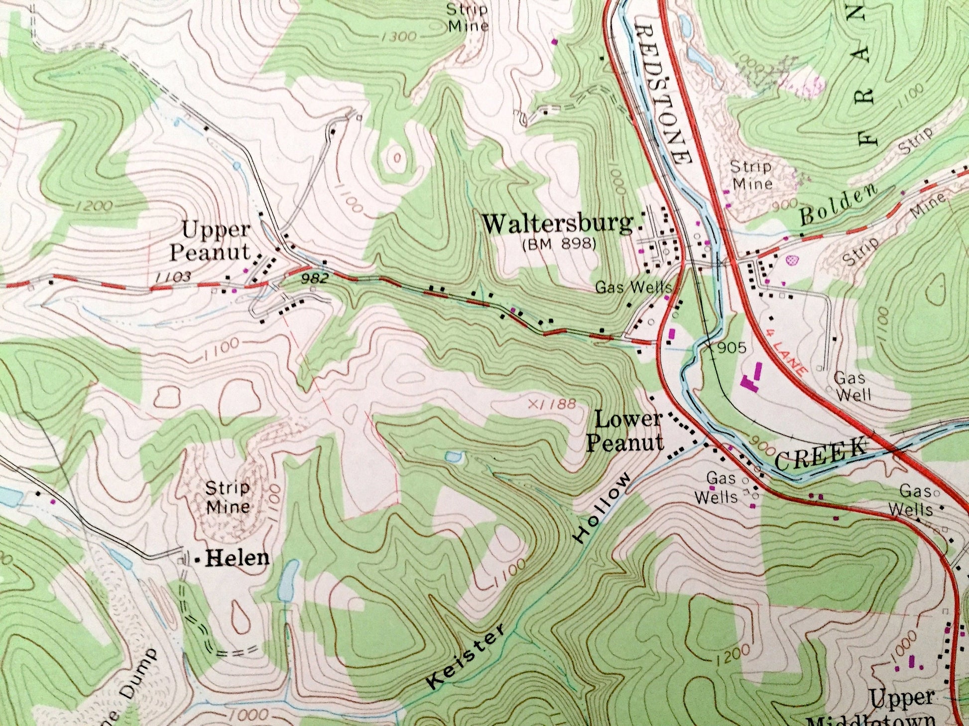Points of Interest: Fayette County, Franklin Lake, Patsys Lake, North Branch Browns Run, Redstone Creek, Dunlap Creek and many more hills, streams, ponds, houses, schools, churches and roads.