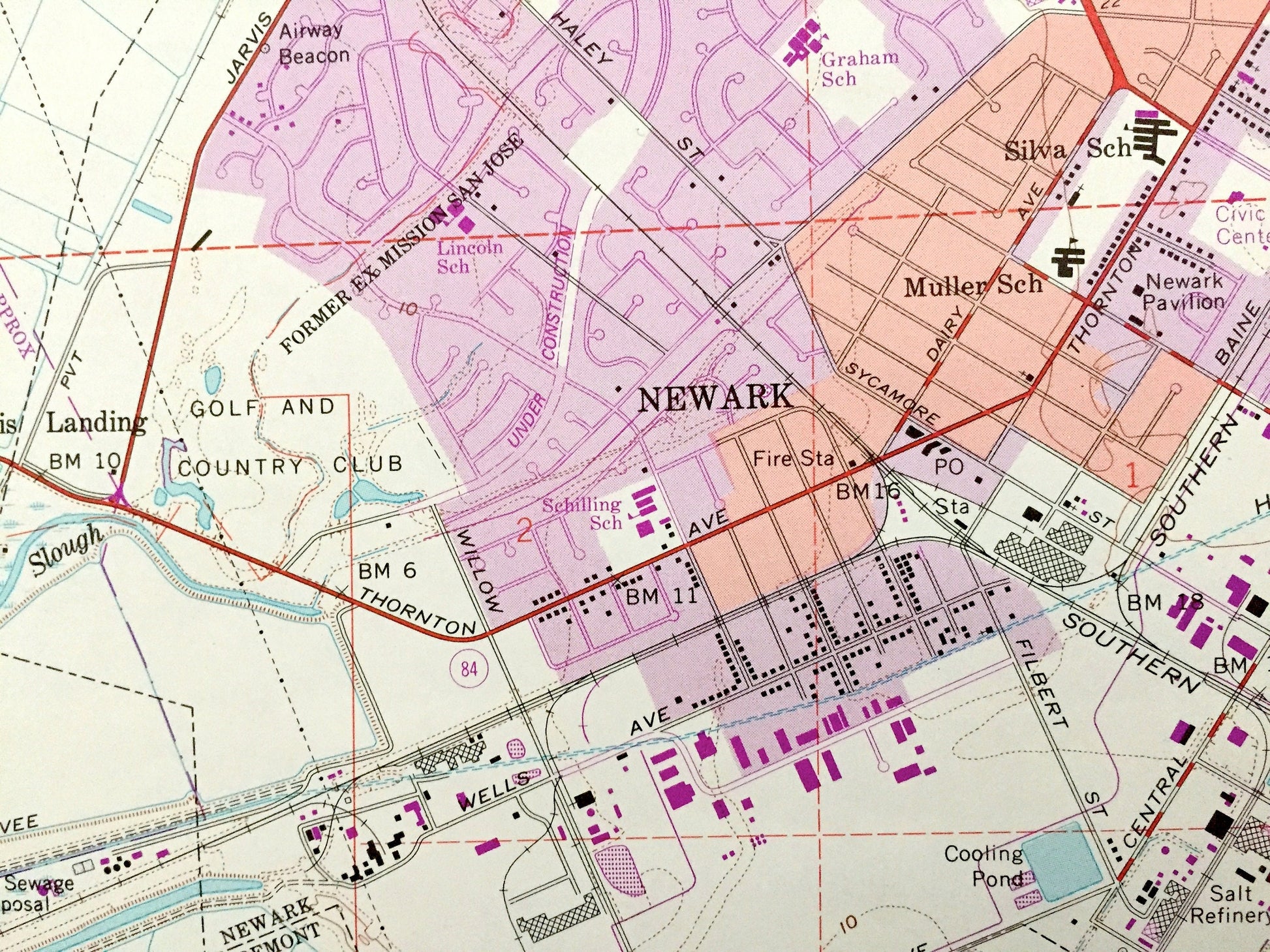 Beautiful, antique map of Newark, California and surrounding Alameda & San Mateo County areas. This is an authentic 1959 edition, 1984 print from the U.S. Geological Survey and NOT a computer reproduction.