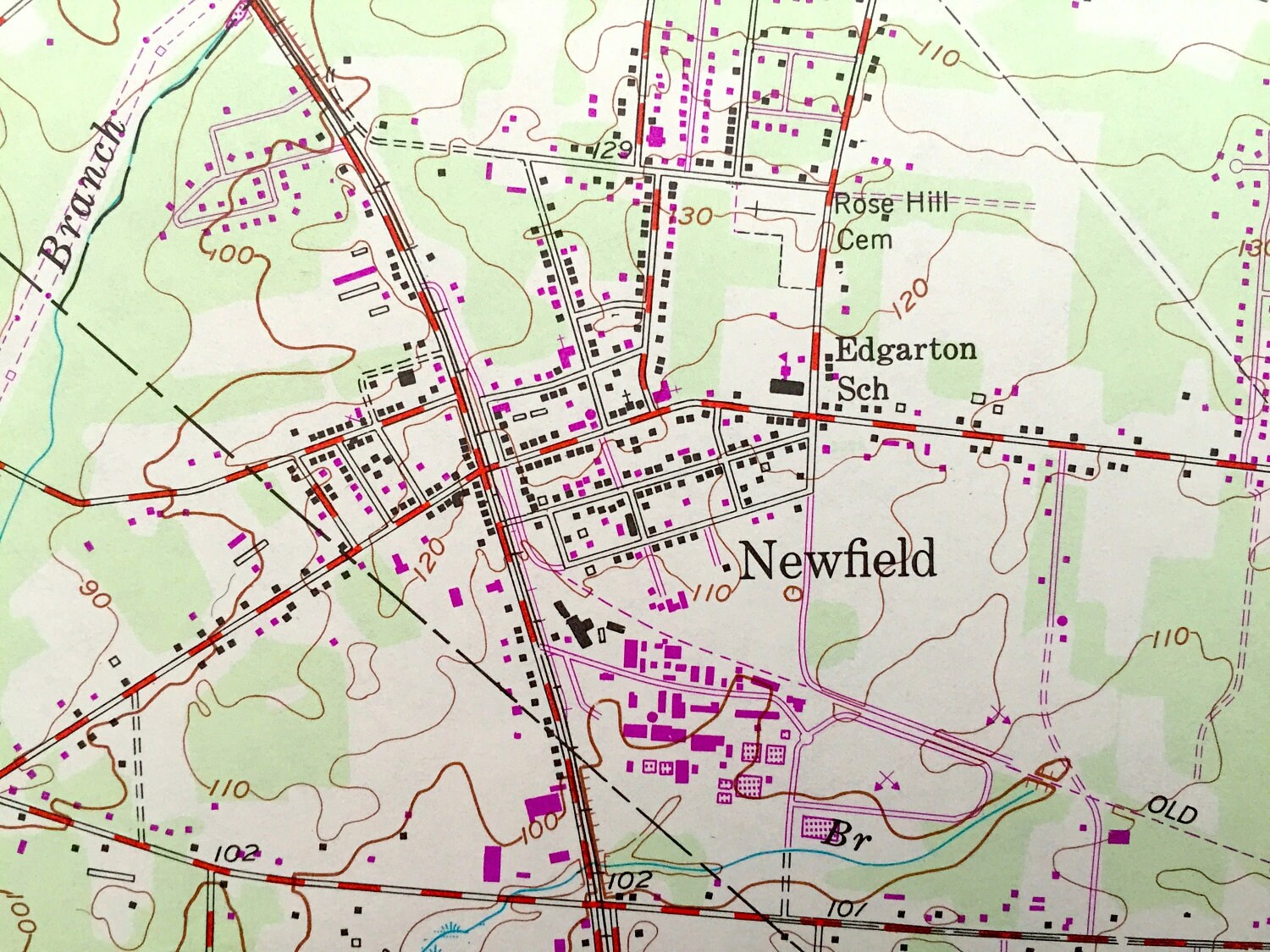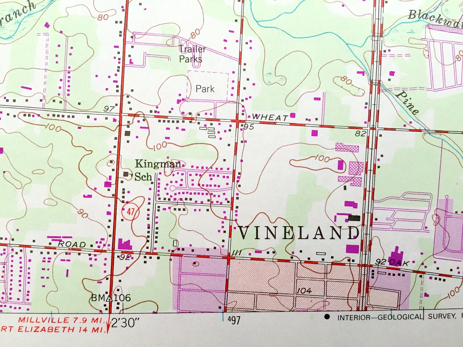 Beautiful, antique map of Newfield, Vineland, Brotmanville, Pittsgrove, Franlin, Plainville and Malaga, New Jersey. This is an authentic 1953 edition, 1994 print from the U.S. Geological Survey and NOT a computer reproduction.