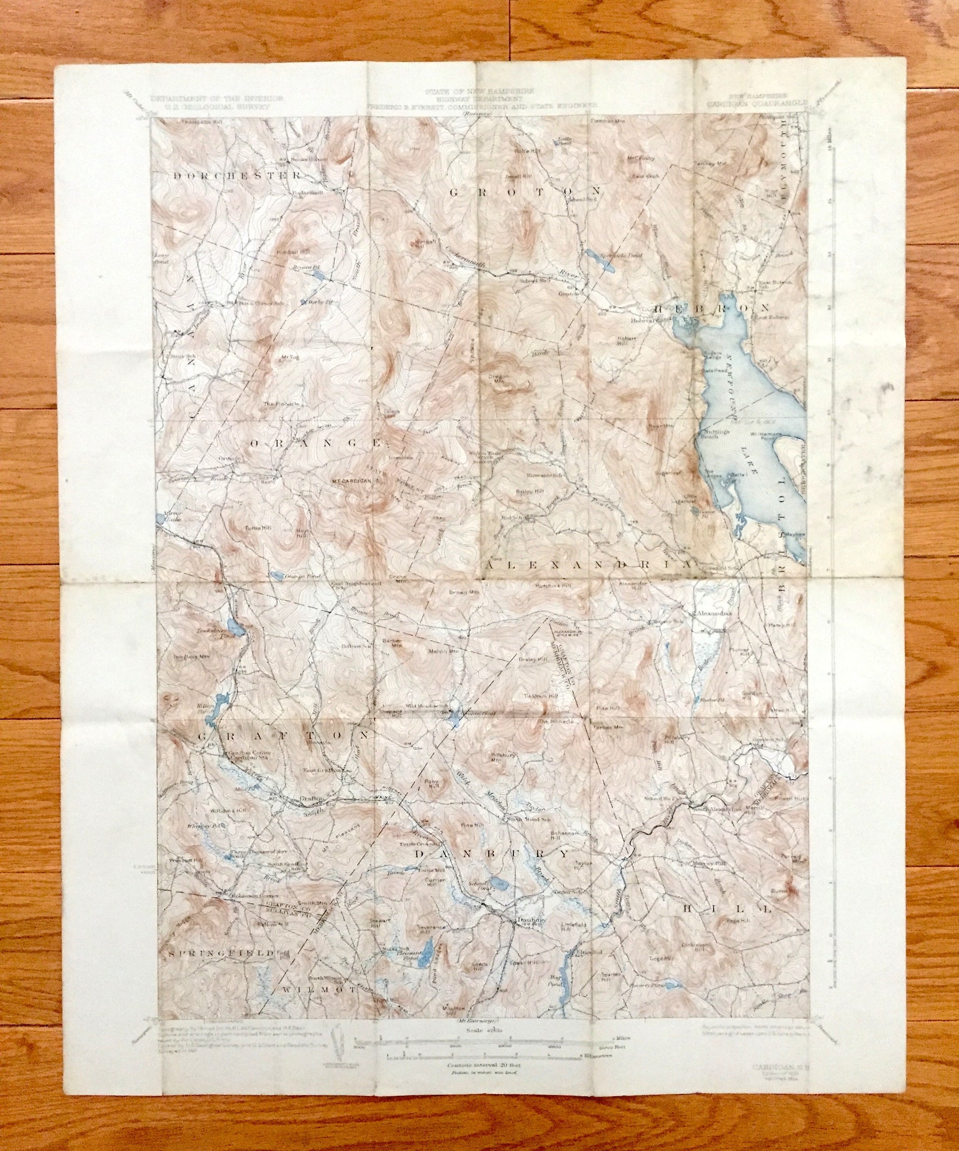 Antique Newfound Lake, New Hampshire 1930 US Geological Survey Topographic Map – Hebron, Bristol, Alexandria, Orange, Danbury Mt Cardigan NH