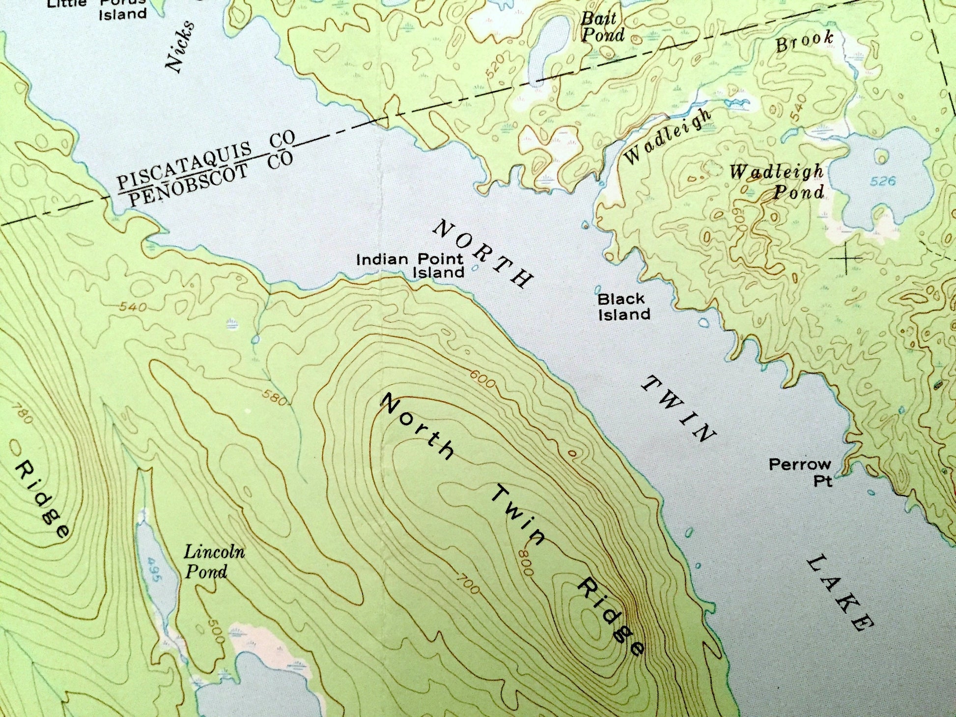 Points of Interest: Piscataquis County, Penbobscot County, Pemadumcook Lake, North Twin Lake, Ambajejus Lake, Millinocket Lake, South Twin Lake, Upper Mary-Jo Lake, Turkey Tail Lake, Quakish Lake, Cedar Lake, Black Cat Mountain, Hammond Ridge, Ragged Mountain, Poraywadjo Ridge, Hopkins Academy Grant, Ambajejus Point, Porus Islands, Elbow Lake, Smith Pond, North Twin Ridge, Buckhorn Camps, and lots more hills, streams, ponds, marshes, houses, islands, coves and roads.