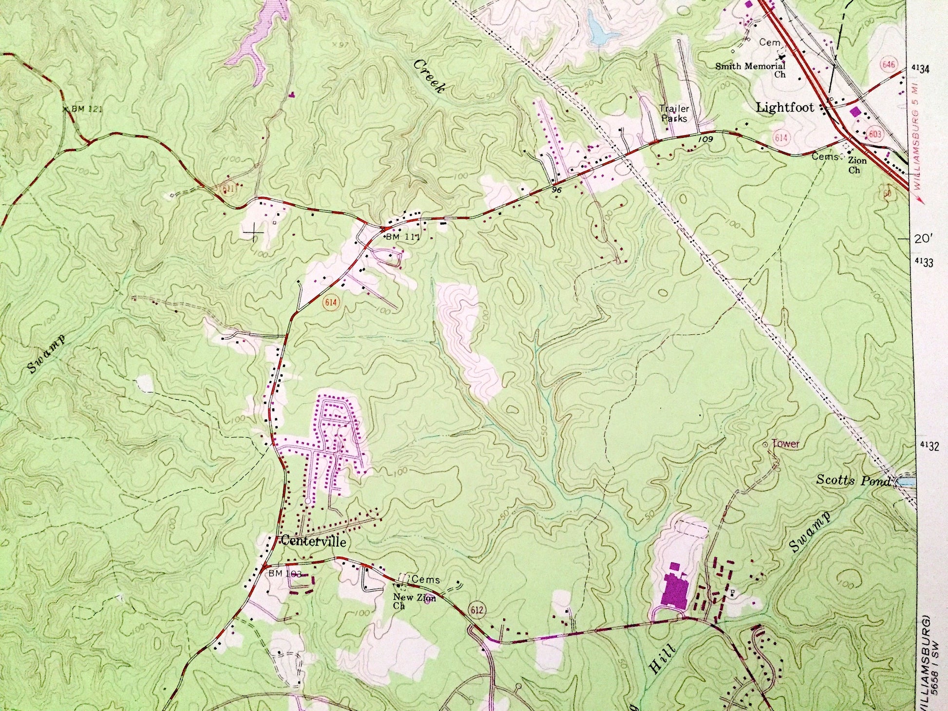 Antique Norge, Virginia 1965 US Geological Survey Topographic Map – James City County, Chickahominy River, Little Creek Reservoir, Toano, VA