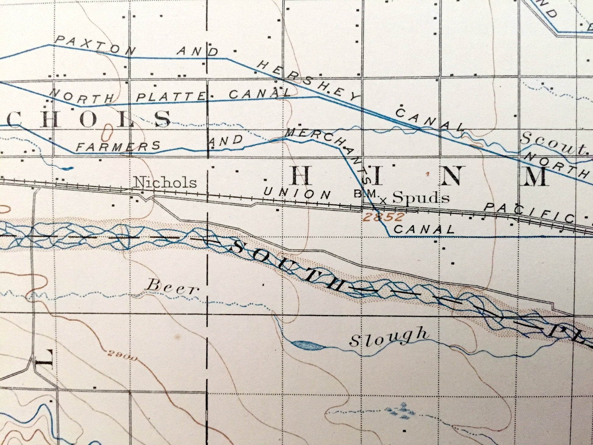 Antique North Platte, Nebraska 1902 US Geological Survey Topographic Map – Nichols, Hinman, Hall, Osgood, Miller Maxwell Cottonwood Plant NE