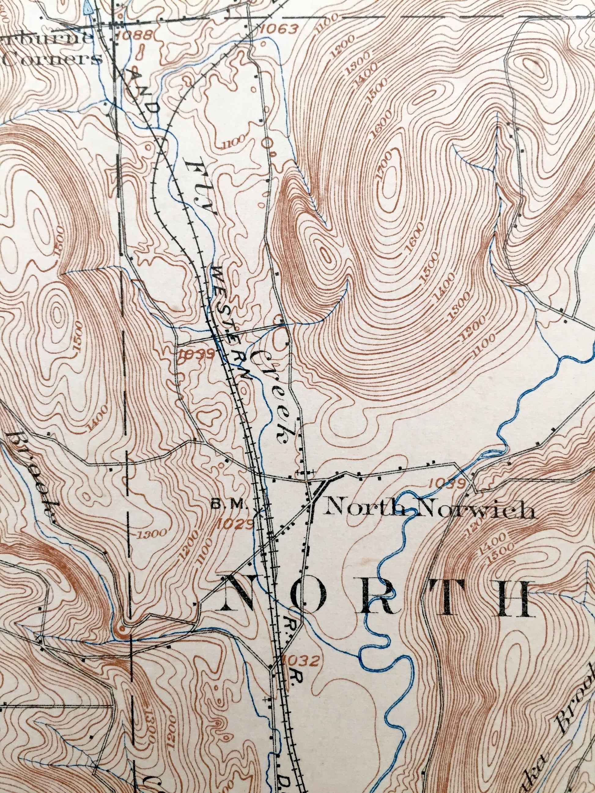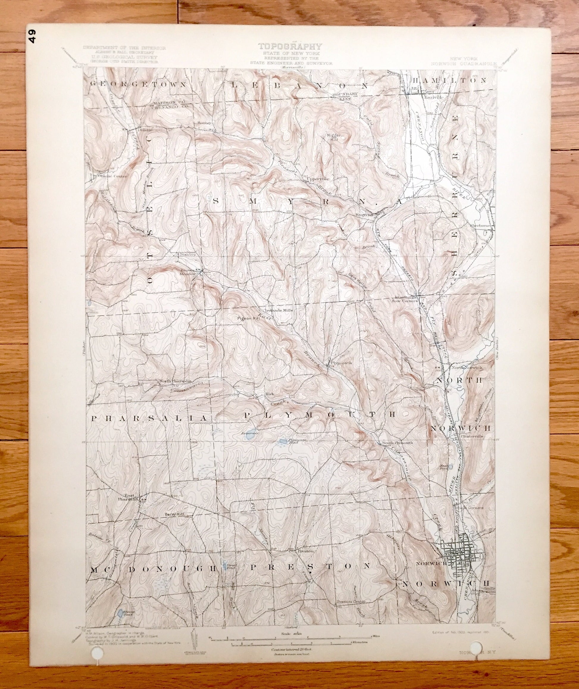 Beautiful, antique map of Norwich, New York and surrounding Madison & Chenango County areas. This is an authentic 1903 edition, 1921 print from the U.S. Geological Survey and NOT a computer reproduction.