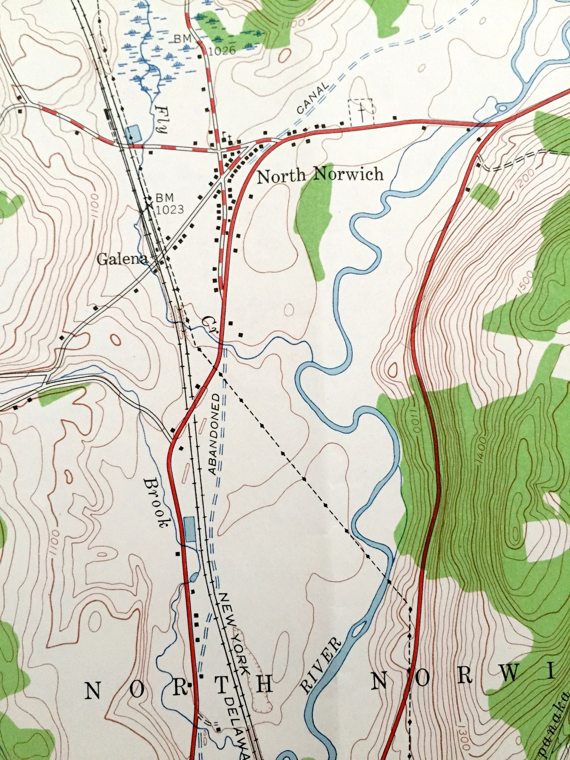 Points of Interest: Turner Creek, Chenango River, Canasawacta Creek, Abandoned Canal, Delaware Lackawanna and Western Railroad, New York Ontario and Western Railway, Mead Pond, Airport, German Hollow, Tinker Ridge, and many more hills, streams, ponds, houses, schools, churches and roads.
