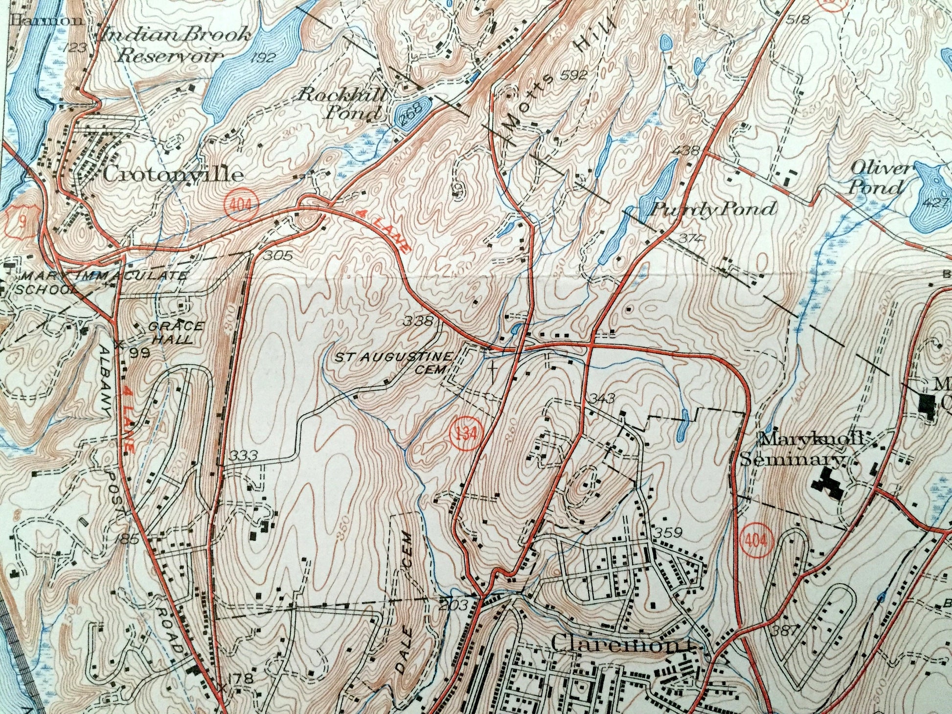 Points of Interest: Hudson River, Tappan Zee, New Croton Reservoir, Sing Sing Prison, Briarcliff Junior College, Teacher's College, All Saints, Croton River, Briarcliff Lodge, State Game Refuge, Bald Mountain, Teatown Lake, Journey's End Lake, Dream Lake, Hog Hill, Mount Airy Hill, Stayback Hill and many more small towns, schools, train tracks, roads, hills and creeks.