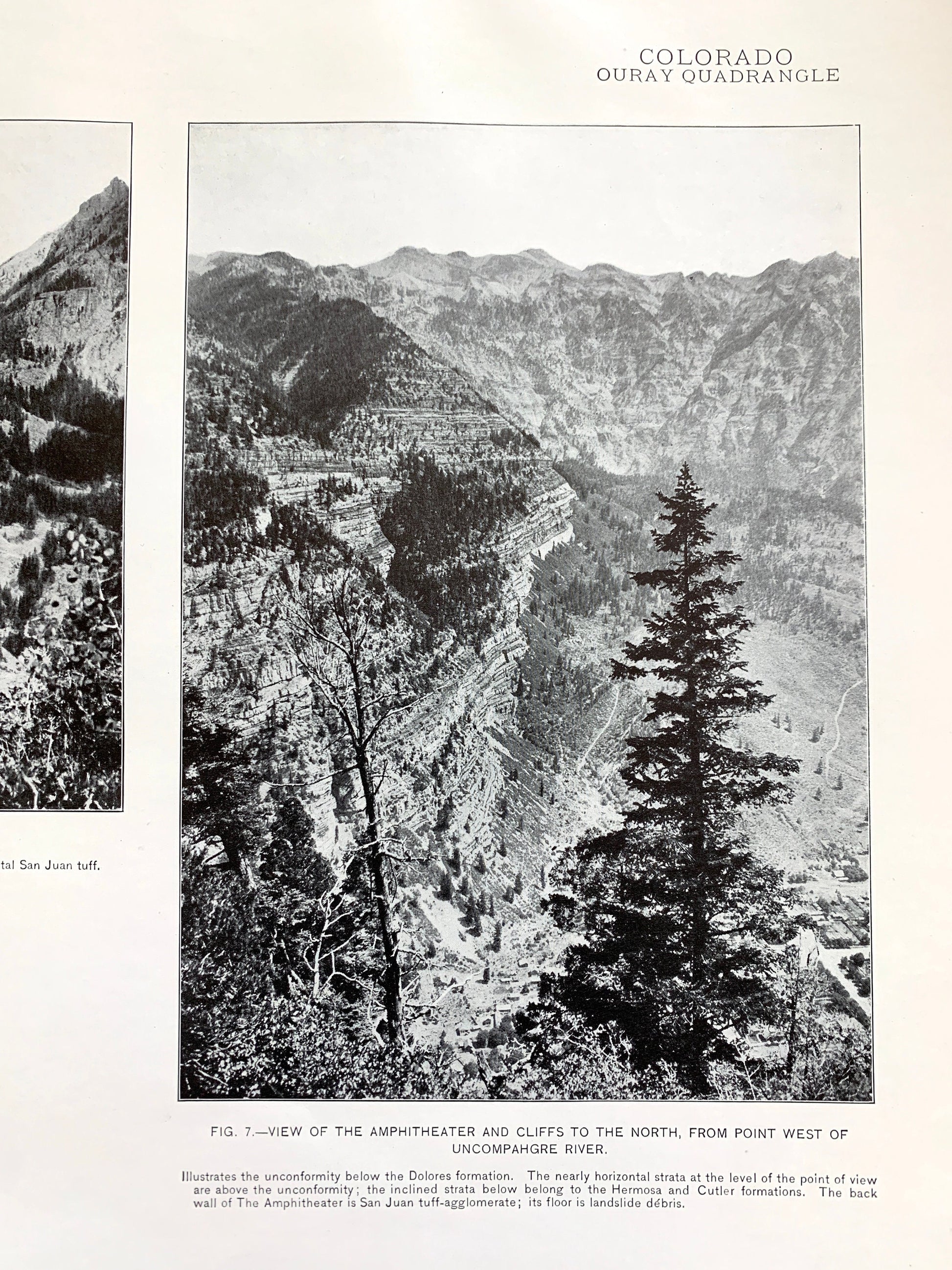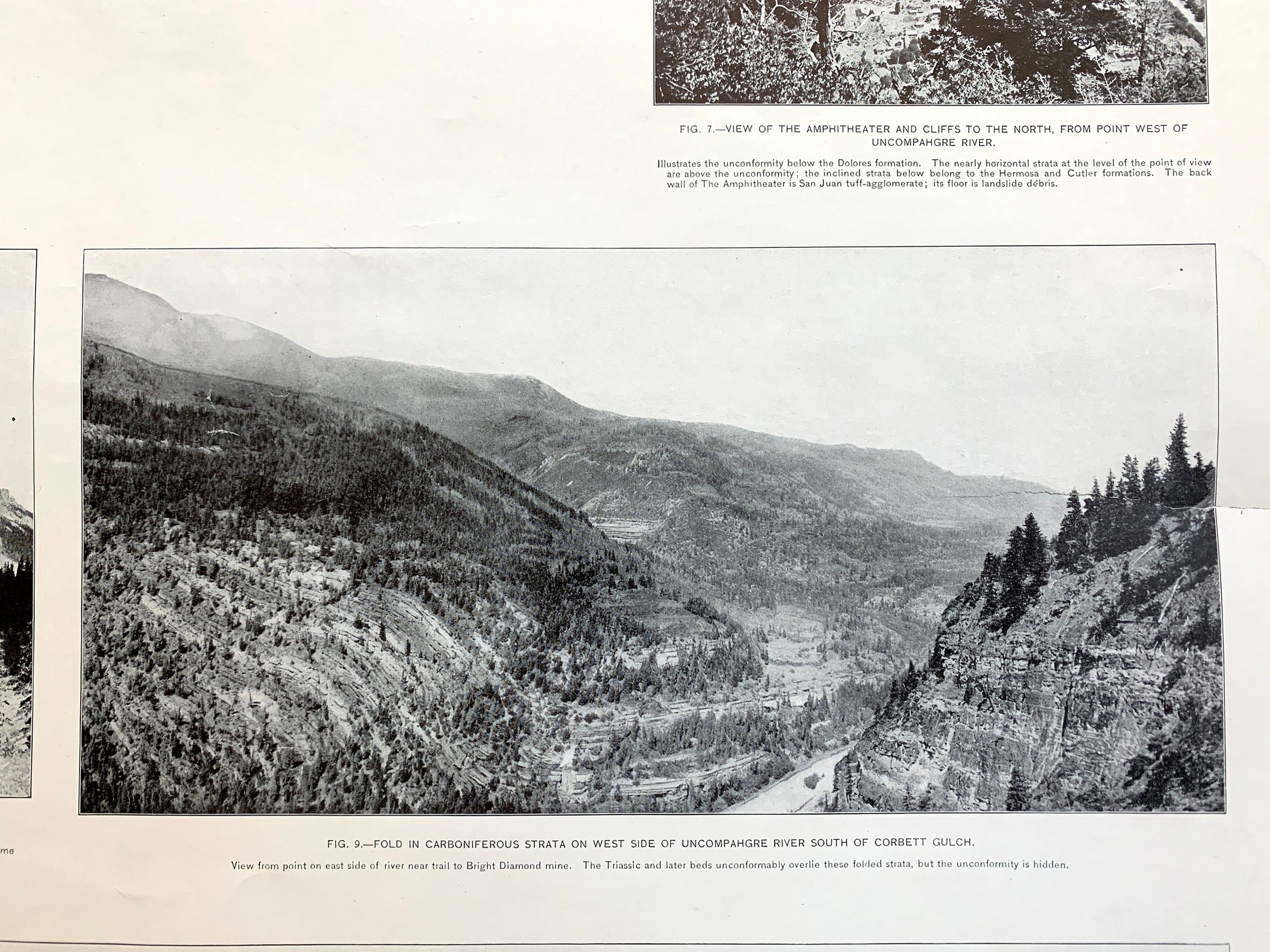Beautiful, antique plate of photographs of various rock formations of the Ouray, Colorado and surrounding Ouray, Gunnison and Hinsdale County area, including Uncompahgre National Forest. This is an authentic 1907 edition, 1907 print from the U.S. Geological Survey and NOT a computer reprint. It is from a Geologic Atlas folio.