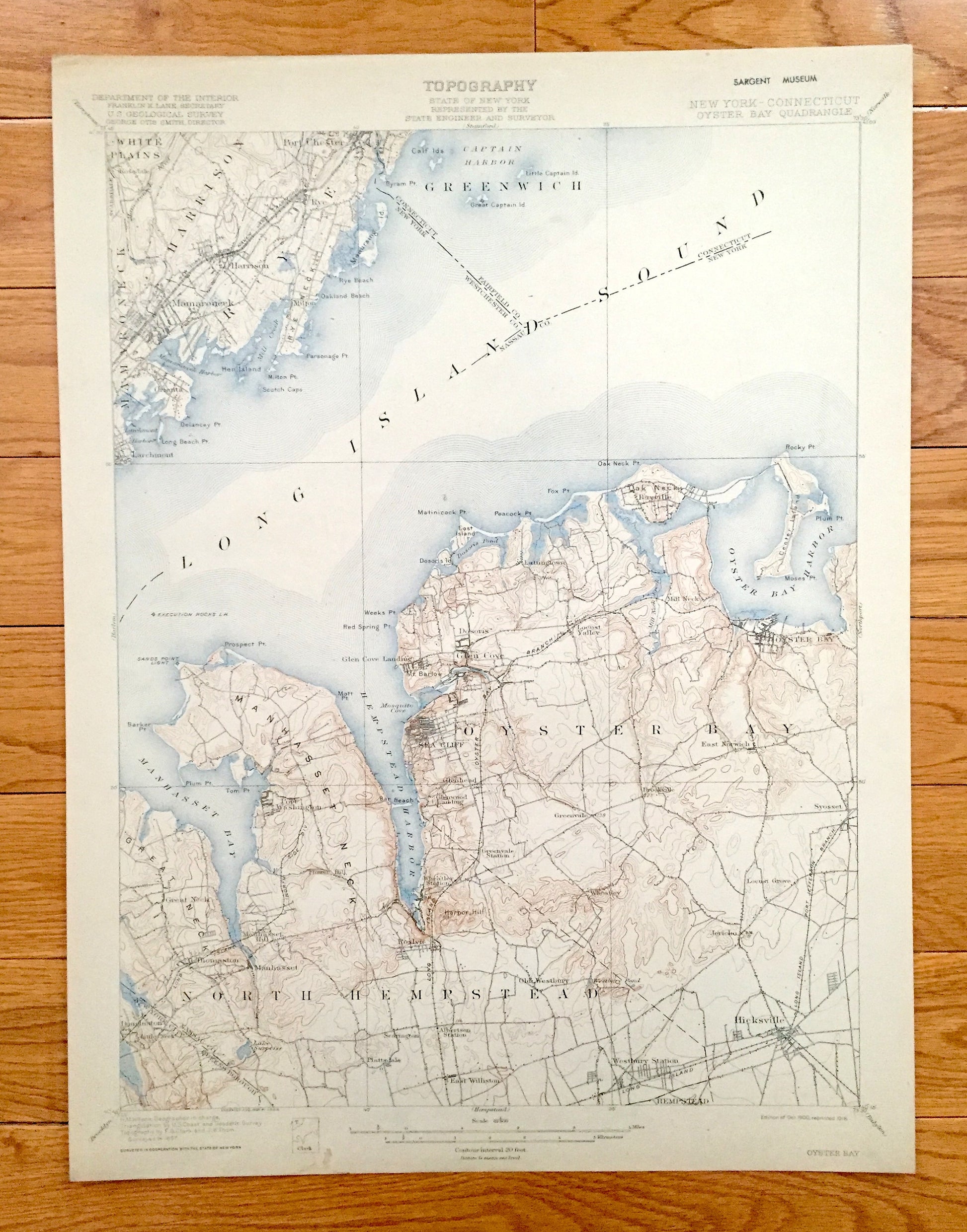 Beautiful, antique map of Oyster Bay, North Hempstead, Mamaroneck & Harrison, New York. This is an authentic 1900 edition, 1918 print from the U.S. Geological Survey and is NOT a computer reproduction.