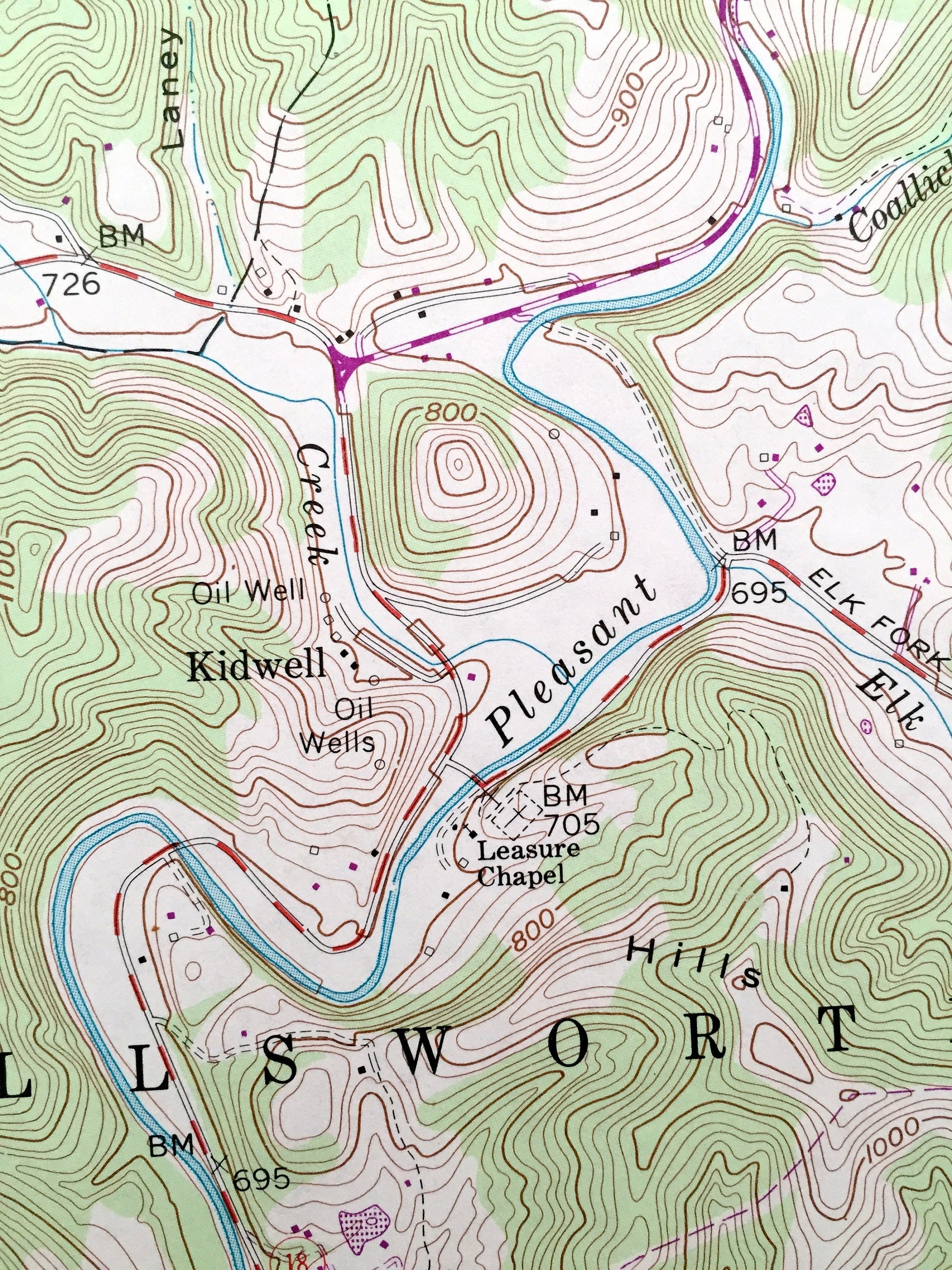 Points of Interest: Wayne National Forest, Regional Oil Wells, Pleasant Ridge, Leasure Chapel, Baltimore and Ohio Railroad, Ohio River, Paden City High School, and lots more hills, streams, ponds, churches, houses, and roads.