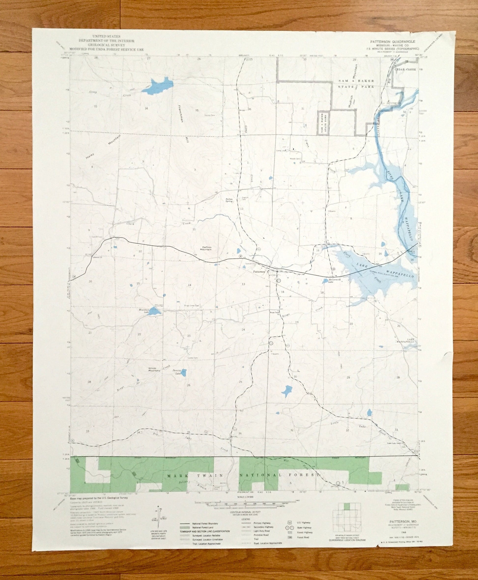 Antique Patterson, Missouri 1968 US Geological Survey Topographic Map – Wayne County, Cedar Creek, Sam A Baker State Park, MO