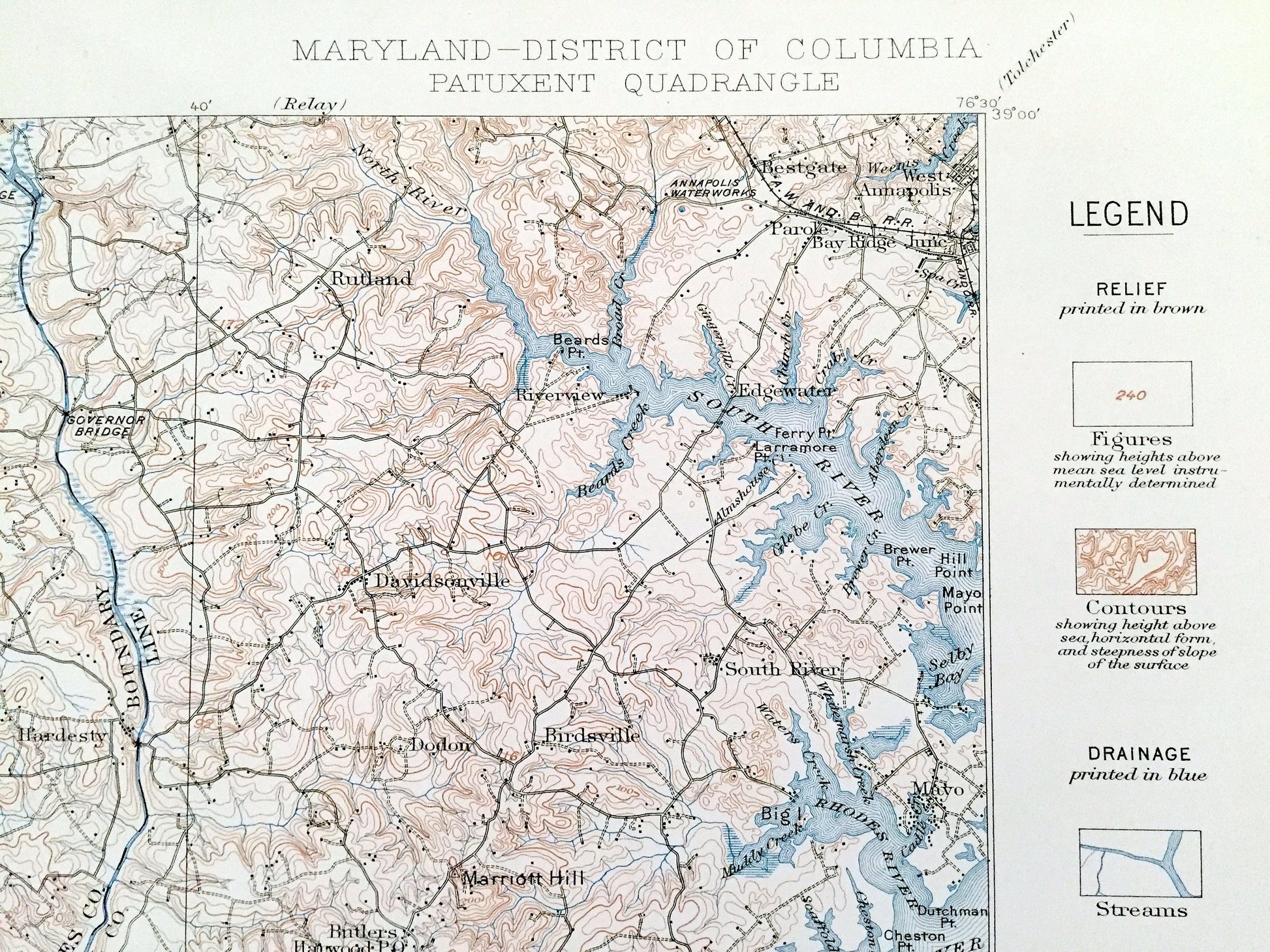 Points of Interest: Prince Georges County, Charles County, Calvert County, Anne Arundel County, Anacostia River, South River, Rhodes River, West River, Herring Bay, Chesapeake Bay, Patuxent River, Leitch Wharf, Gods Grace Point, Philadelphia, Baltimore & Washington Railroad, Governor Bridge, and lots more streams, marshes, points, coves, islands, houses, wharfs, roads and national monuments.