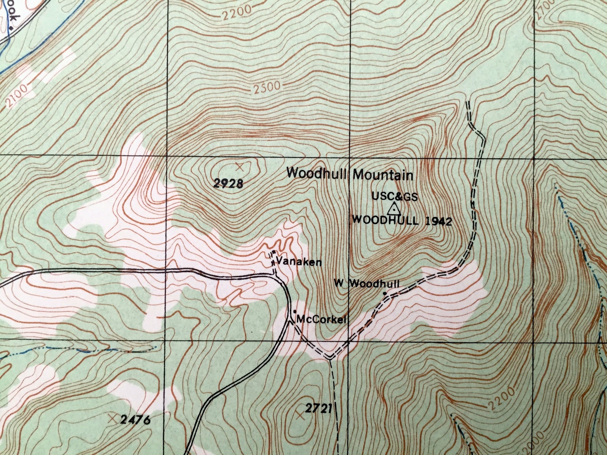 Beautiful, antique map of Peekamoose Mountain, New York and surrounding Ulster & Sullivan County area. This is an authentic 1943 print from the U.S. Army Corps of Engineers and NOT a computer reproduction.