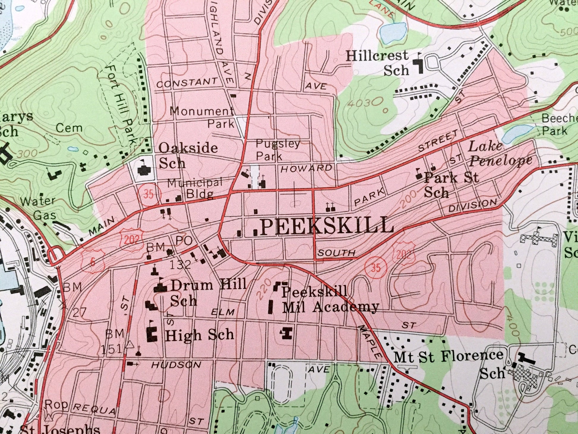 Points of Interest: Hudson River, West Point Military Reservation, Iona Island, Lake Peekskill, Peekskill Creek, Lake Meaghah. Blue Mountain Reservation, Lake Celeste, and many more hills, streams, ponds, houses, schools, churches and roads.