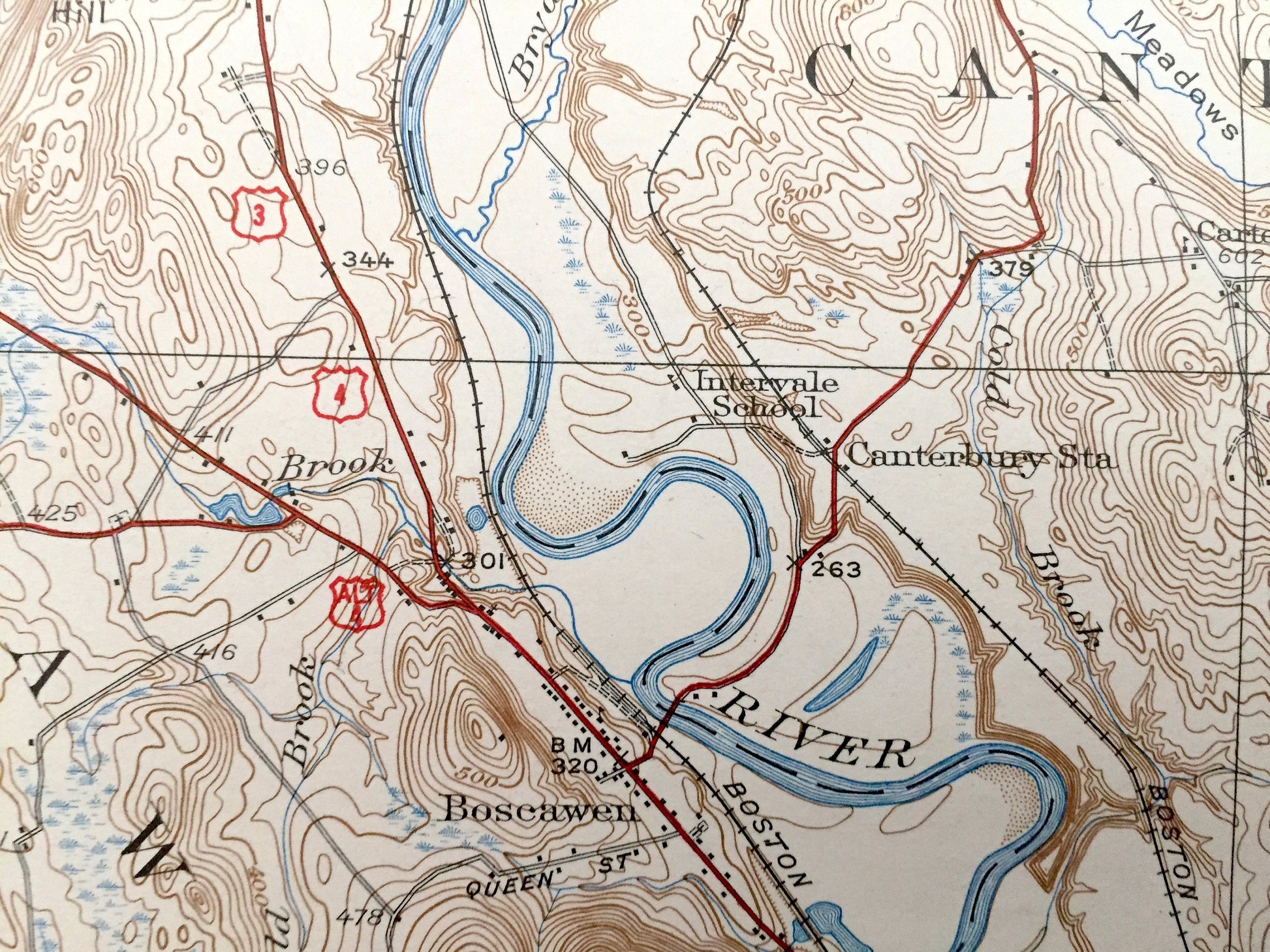 See what Merrimack & Belknap Counties looked like over 90 years ago. Lots of intricate details and geological contours. Map even has little squares for every house that existed at the time. The USGS cartographers were very thorough back then! On the back is a description of topographic symbols and map guide.