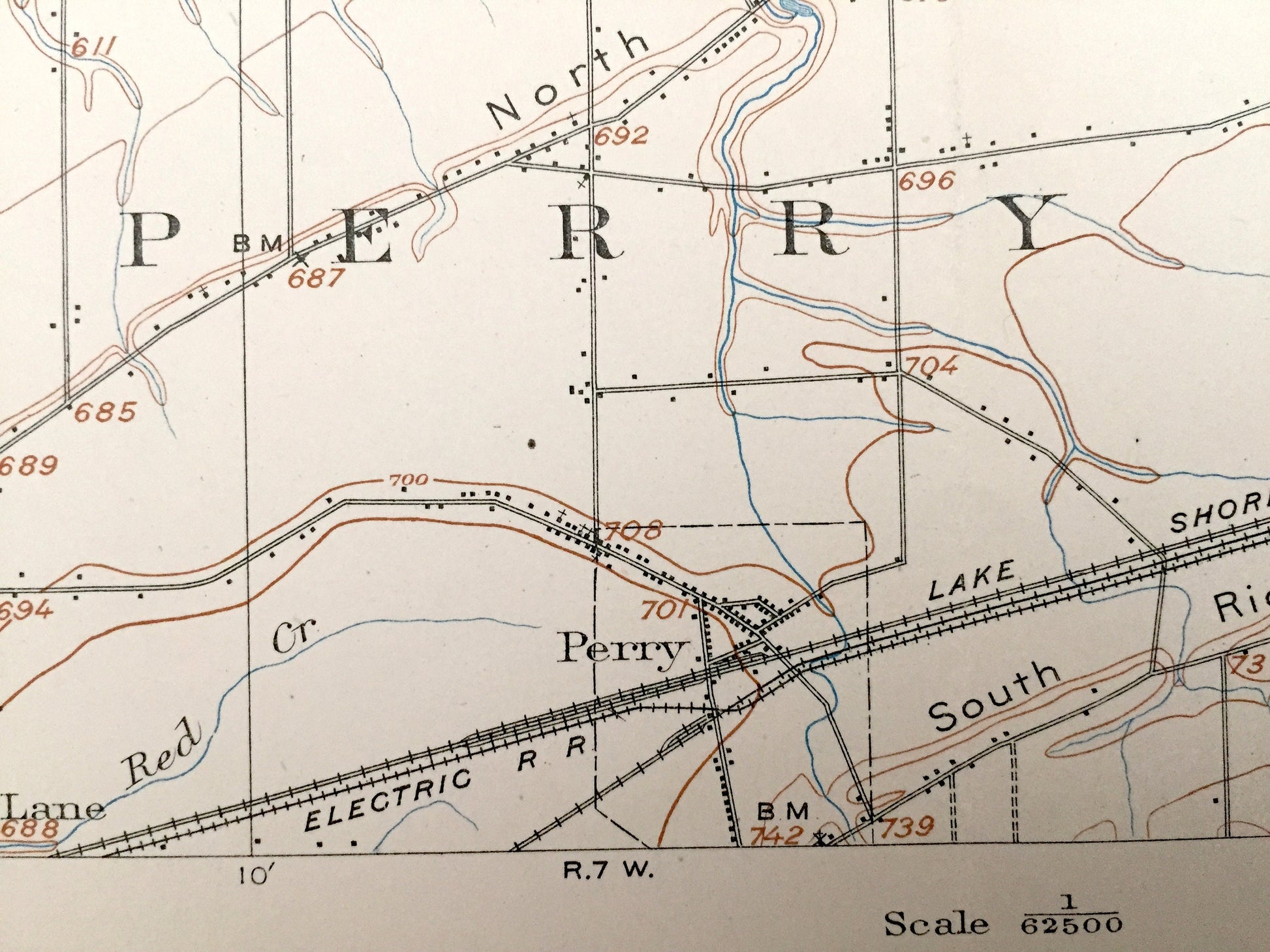 Beautiful, antique map of Perry, Ohio and surrounding Lake and Ashtabula County area. This is an authentic 1905 print from the U.S. Geological Survey and NOT a computer reproduction.