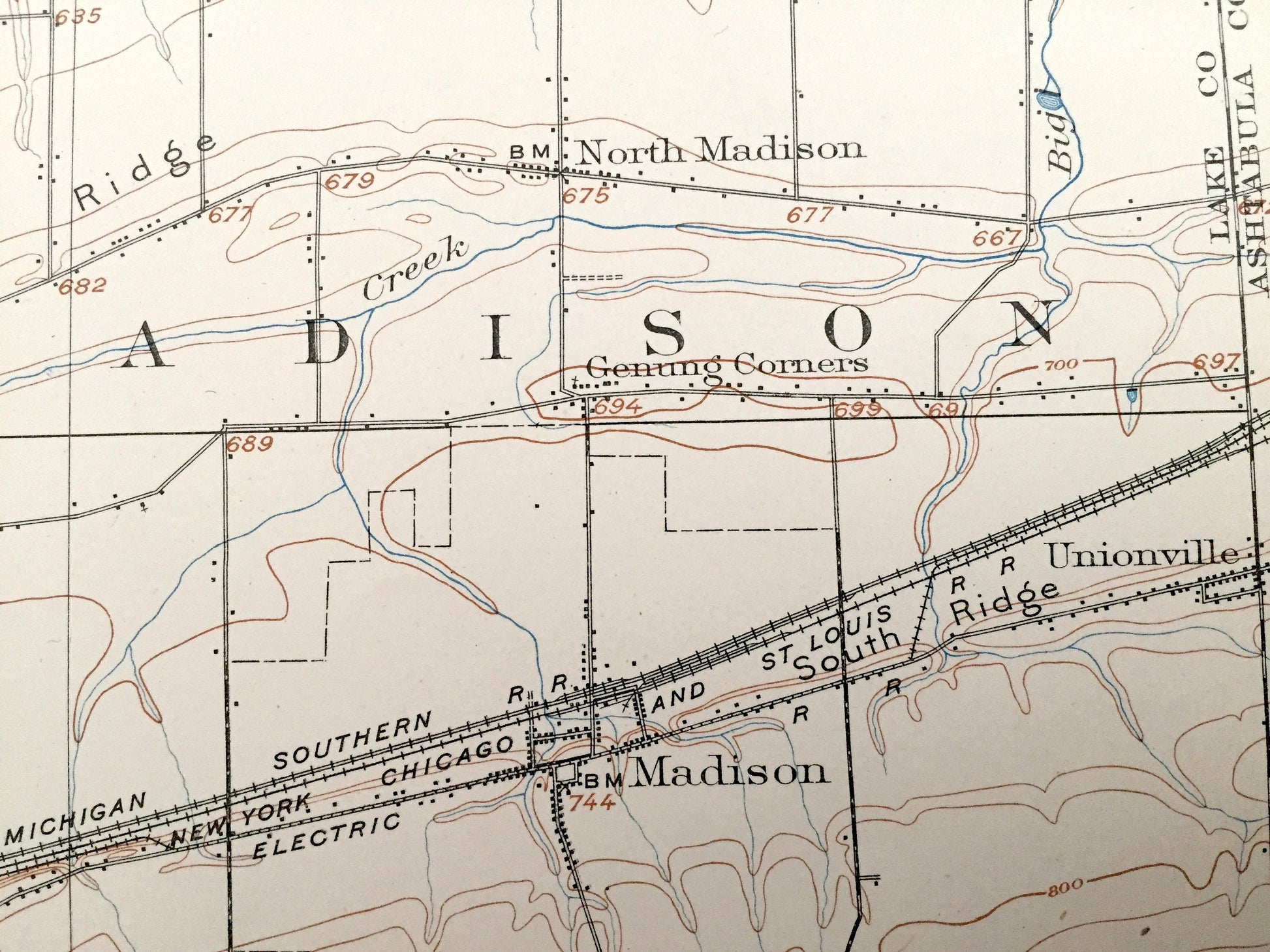 Points of Interest: Lake Erie, North Ridge, Lake Shore & Michigan Southern Railway, South Ridge, Grand River, McKinley Creek, and lots more hills, mountains, creeks, towns, roads and train tracks.
