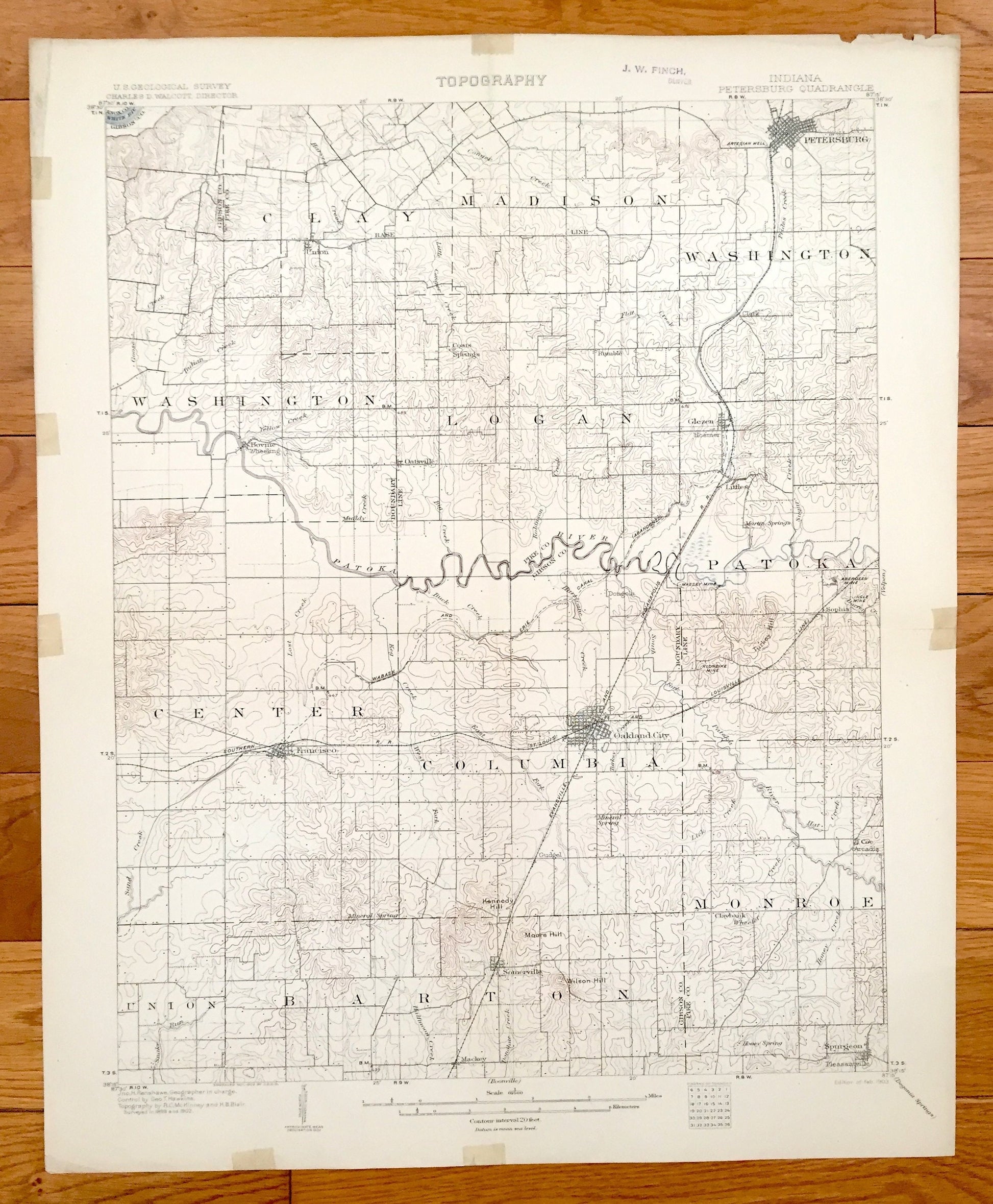 Beautiful, antique map of Petersburg, Indiana and surrounding Gibson & Pike County area. This is an authentic 1903 print from the U.S. Geological Survey and NOT a computer reproduction.