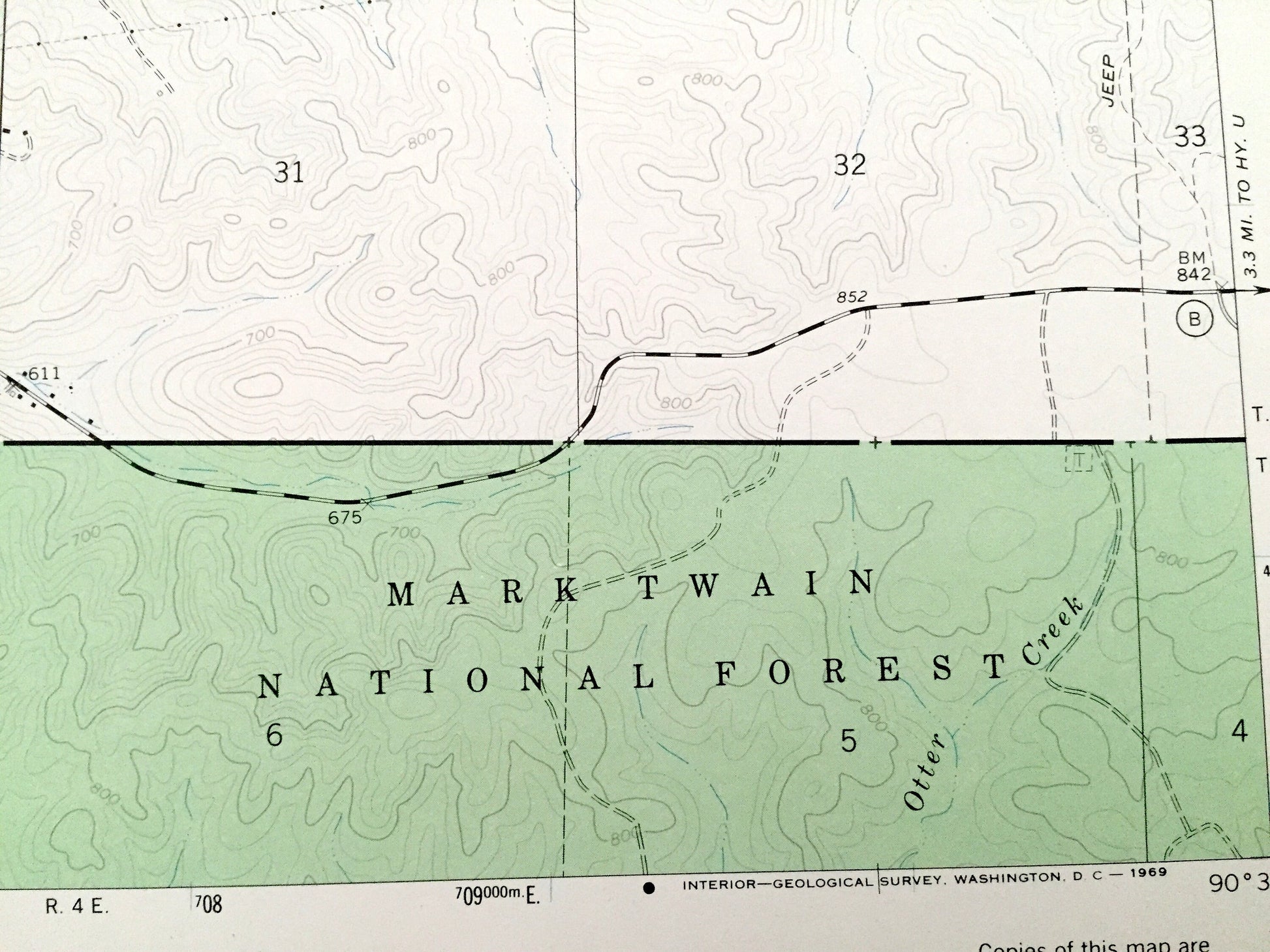 Points of Interest: Mark Twain National Forest, McMillan Hollow, Happy Hollow, Finley Mountain, Lon Sanders Canyon, Clark Mountain, Grassy Mountain, Gold Hill, Iron Knob, Haley Mountain, Chloe Mountain, Finley Branch, Goose Creek, Lick Branch, Dry Creek, Clark Creek, Greasy Creek, McKenzie Creek, and many more hills, streams, ponds, houses, schools, railroads, churches and roads.