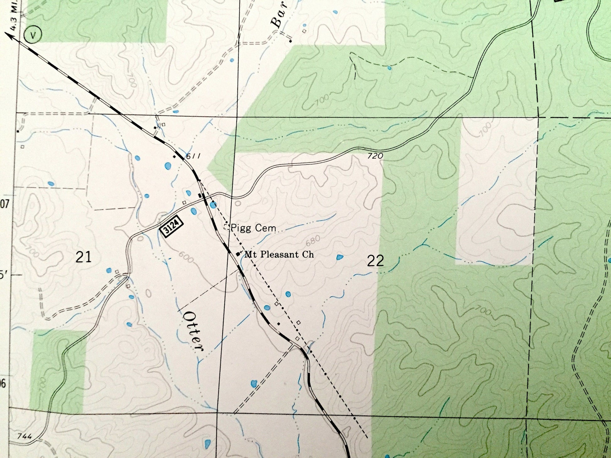 Points of Interest: Blackwell Ridge, Pleasant Valley, Childs Hollow, Browns Hollow, Handy Hollow, Barren Fork, Otter Creek, Eads Creek, Knox Branch, Williams Creek, Marler Branch, Big Lake Creek, Julian Lake Creek, Wolf Branch, Persimmon Branch, Black River, and many more hills, streams, ponds, houses, schools, railroads, churches and roads.