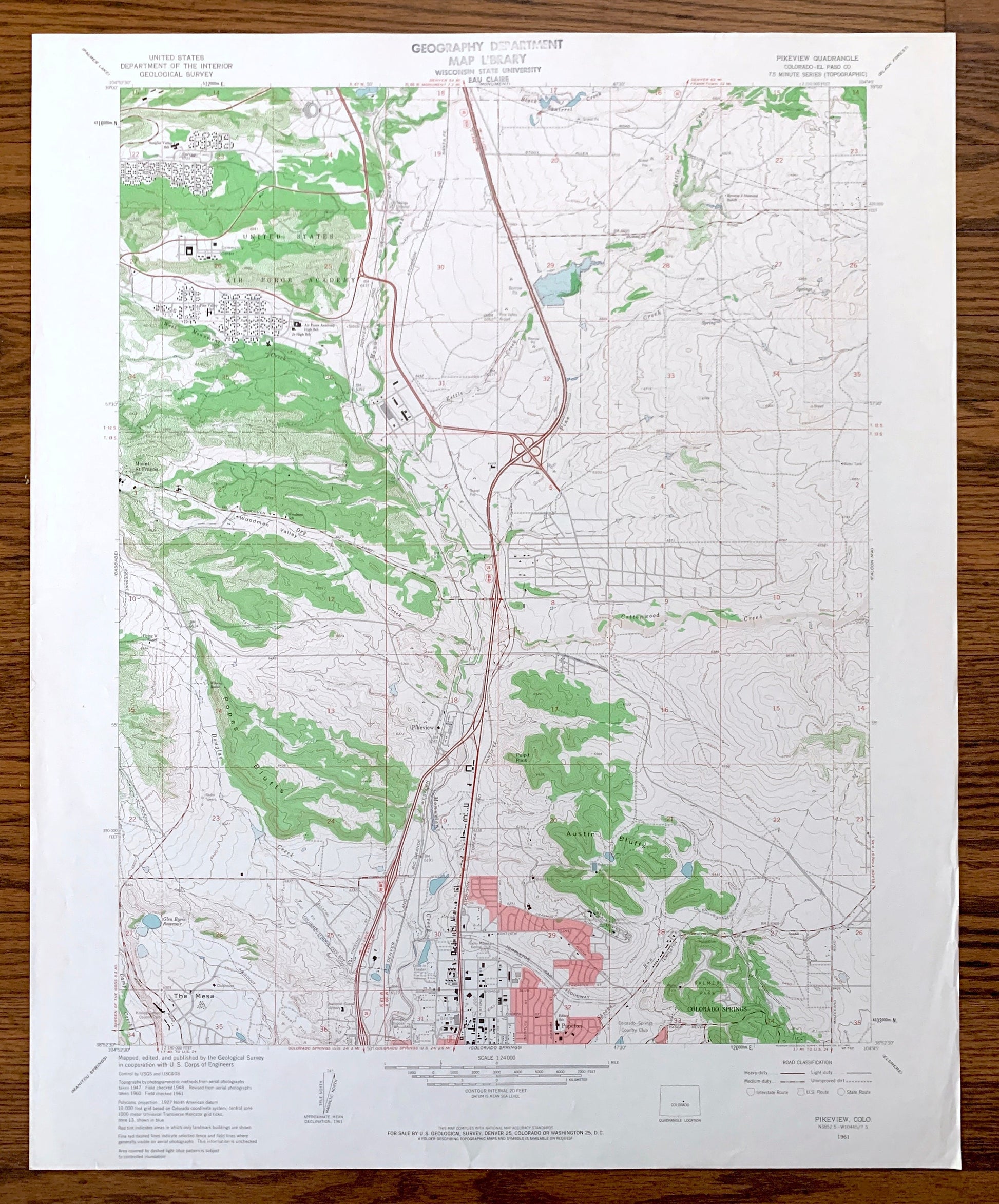 Beautiful, antique map of Pikeview, Colorado and surrounding El Paso County area. This is an authentic 1961 edition, 1963 print from the U.S. Geological Survey and NOT a computer reproduction.